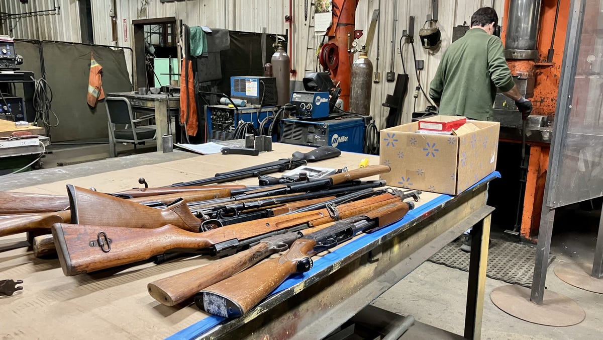 In the lobby of the Worcester Police Department’s headquarters downtown, workers and officers collected three BB guns, six long guns and one pistol over the course of four hours, then brought them to City Welding & Fabrication on Ararat Street to be parted out.