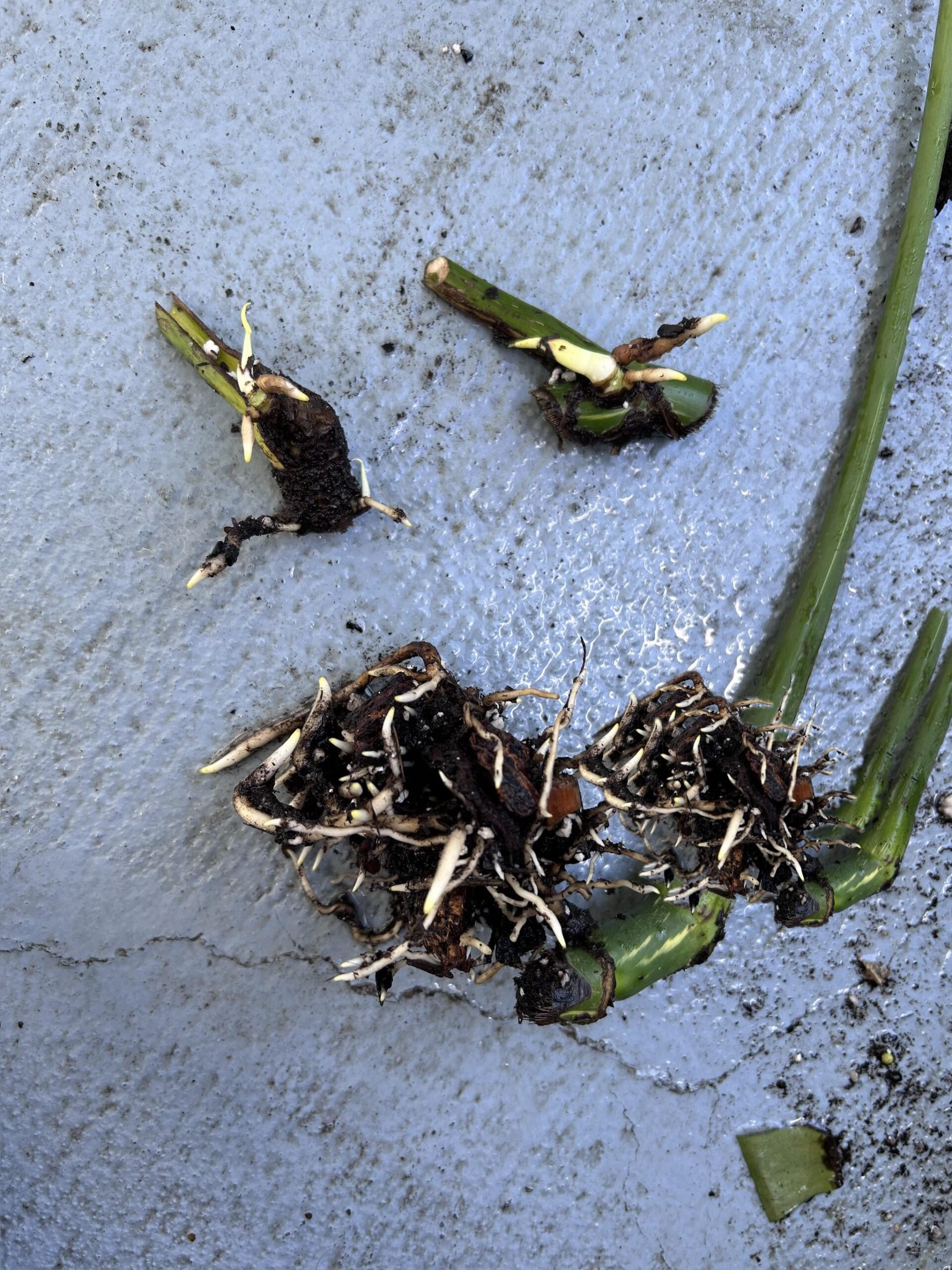 I inherited a failing Monstera and saved these three pieces that sat in water for a few weeks and developed these very small roots. Reading Reddit plant posts I’ve come to understand I do things differently than most folks here. My question to you is are these ready to stick into soil?
