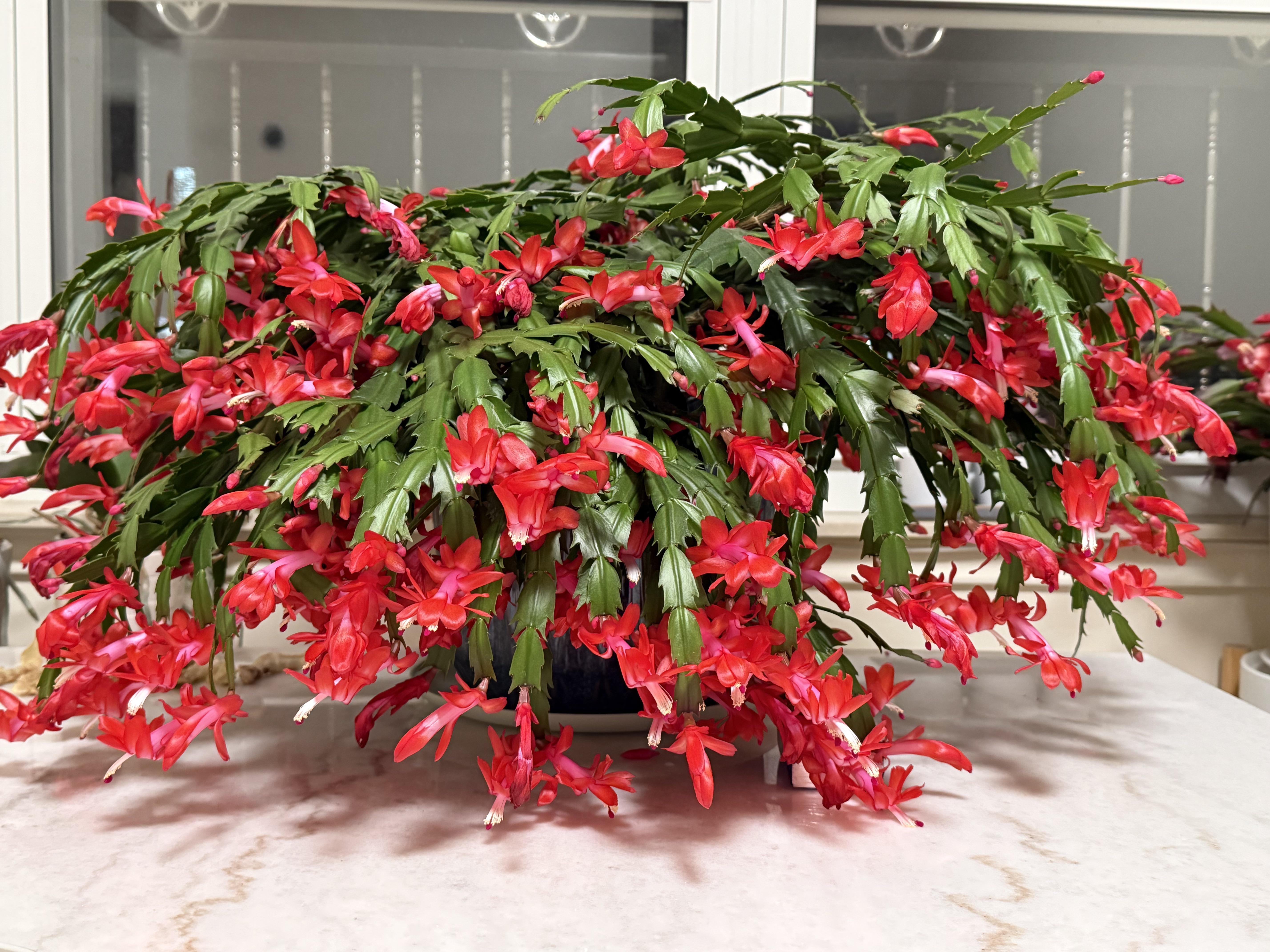 My 3 year old thanksgiving cactus in full bloom. I started this one from a 4 segment cutting in a full sun south facing window, and it just took off. by catsgardening Fat Plantssucculent plantssucculents 2 Comments JazzlikeTrifle4214 2 weeks ago Gorgeous! How old is your plant? Minflick 2 weeks ago It’s SUCH a rush when the explode in bloom! https://preview.redd.it/hrlhalltp27g1.jpeg?width=4032&format=pjpg&auto=webp&s=166e32a78982470cdac0739a9fda770ba1abfa7c