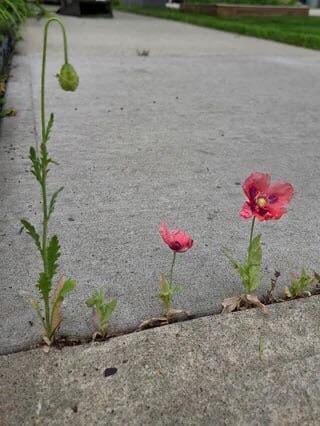 Late last winter I sowed a full quart jar of poppy seeds (16.25 trillion seeds, give or take) around my garden. Only a handful came up in the harshest of places where even weeds struggle. I’d really like to know how some of my neighbors have beautiful thick stands of poppies in their gardens?