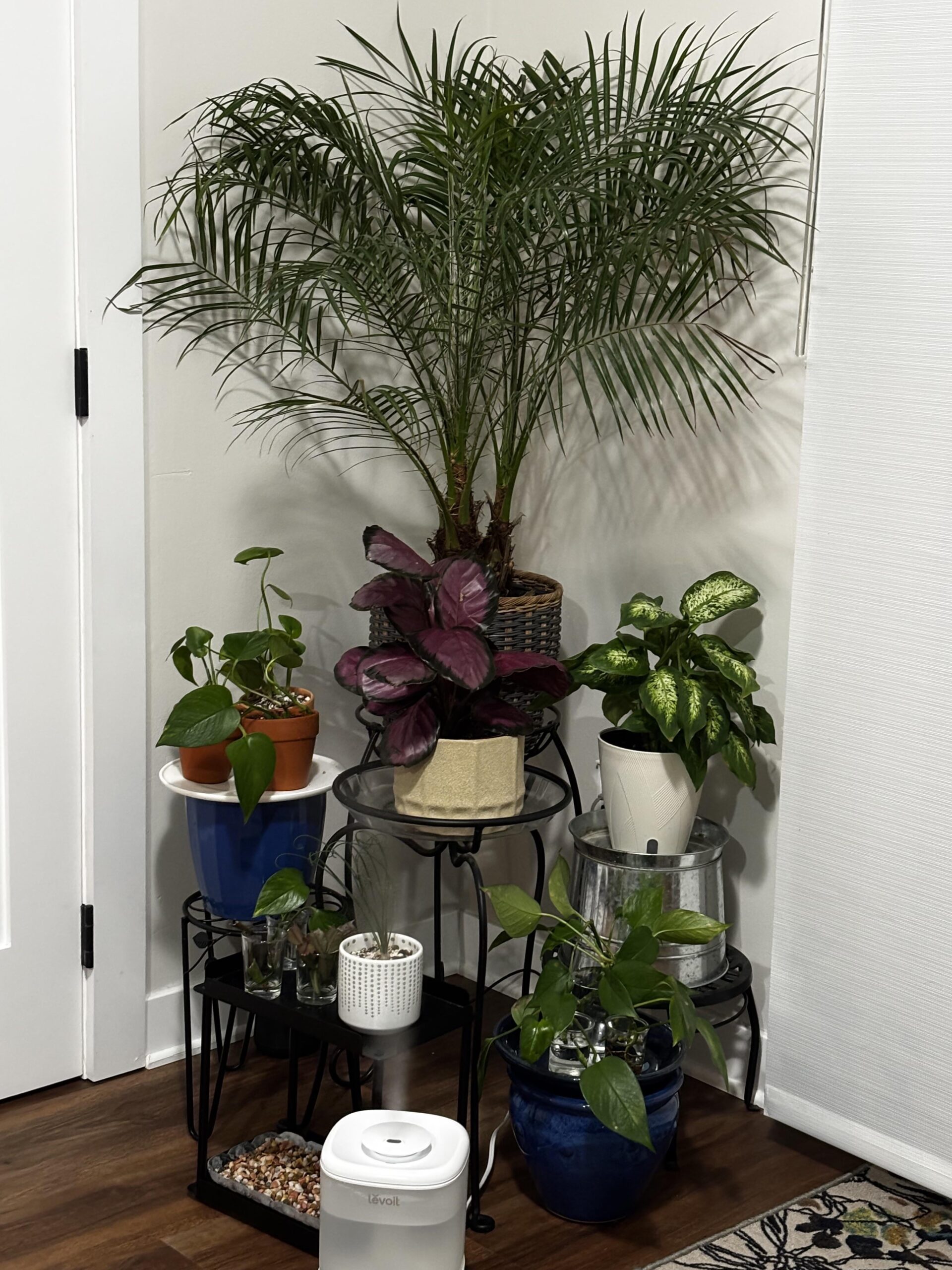 You can’t tell now because it’s 10 pm, but this corner gets good in direct light from the sliding glass door. BTW, this is the longest I’ve ever kept a palm alive. 🌴