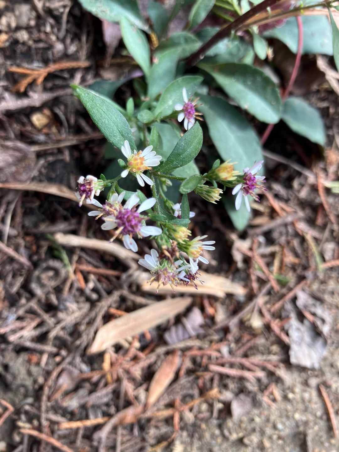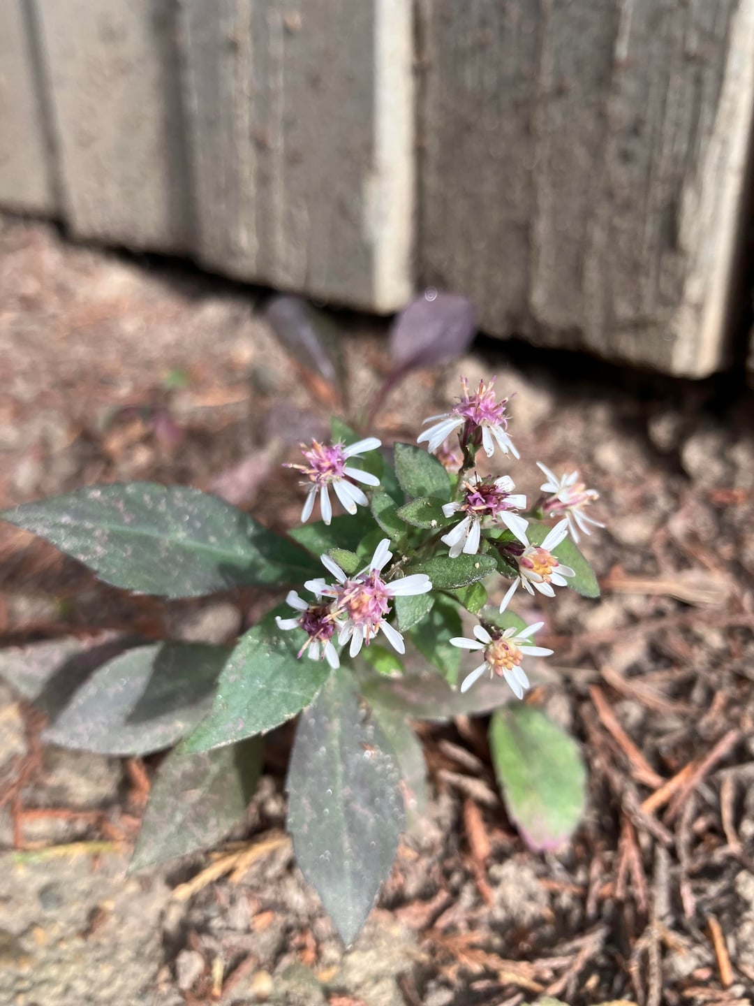 Found between the sidewalk and a fence in December. Though they might be blooming out of season. What are they? (Puppy for scale) by moistened-cake plants IdentificationWhat's this plant 2 Comments Arceuthobium 1 week ago Yeah, not chamomile. It’s a Symphyotrichum, compare with S. lateriflorum. Consistent_Essay2422 1 week ago Leaves don’t look like lateriflorum but the flowers do. Interesting.