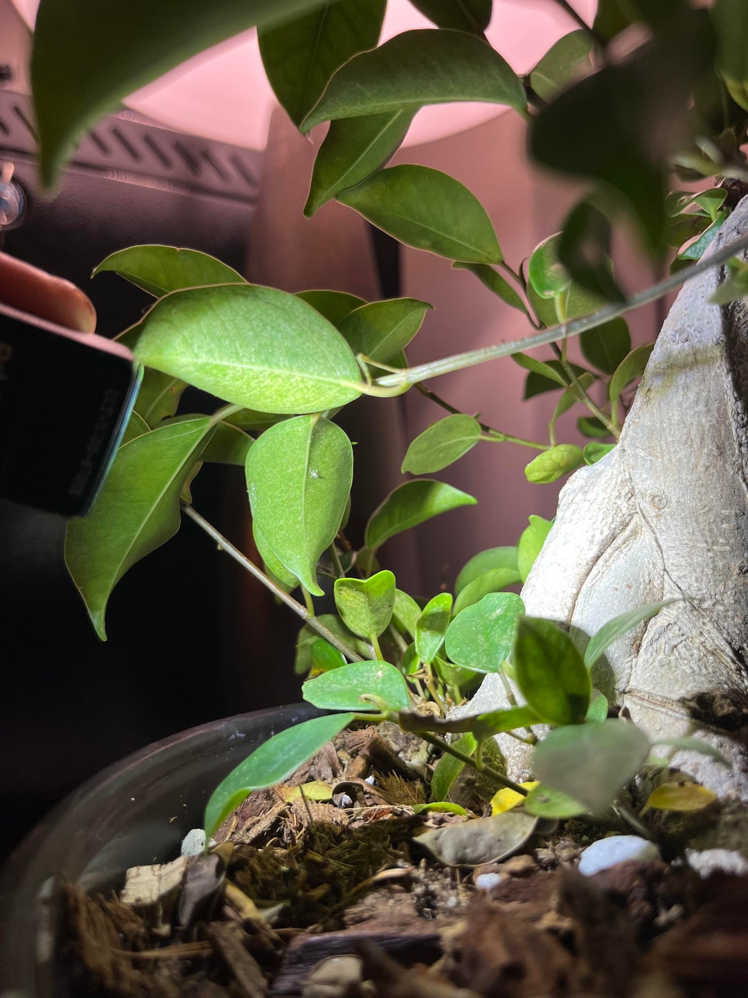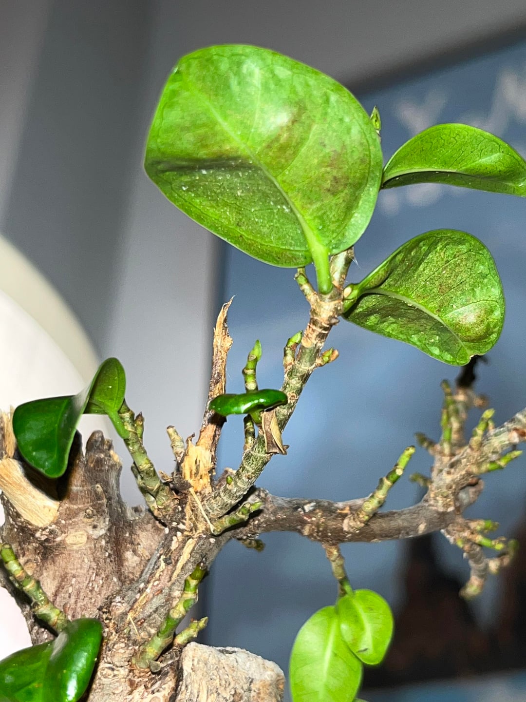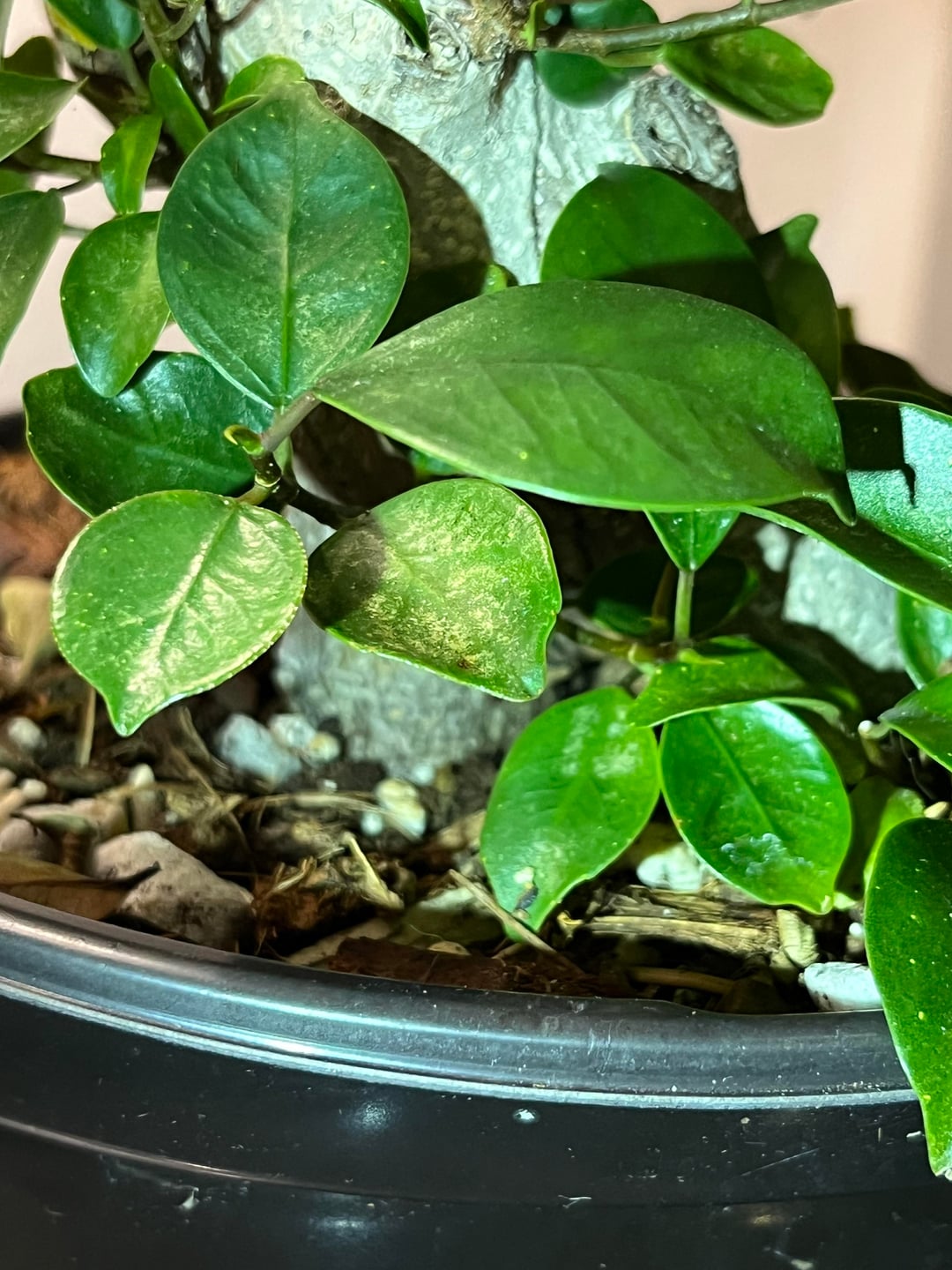 Maybe it’s because my phone brightness is weird but are you talking about the white dots? Pic 6 has that bit of fuzz-looking thing on it, if you see those they’re usually mealybugs