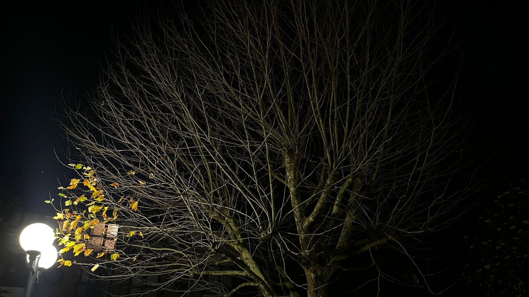 Glittering_Cow945 2 weeks ago I have noticed this numerous times as well. the light lengthens the day for the nearby parts of the tree so they don’t go into winter mode yet.