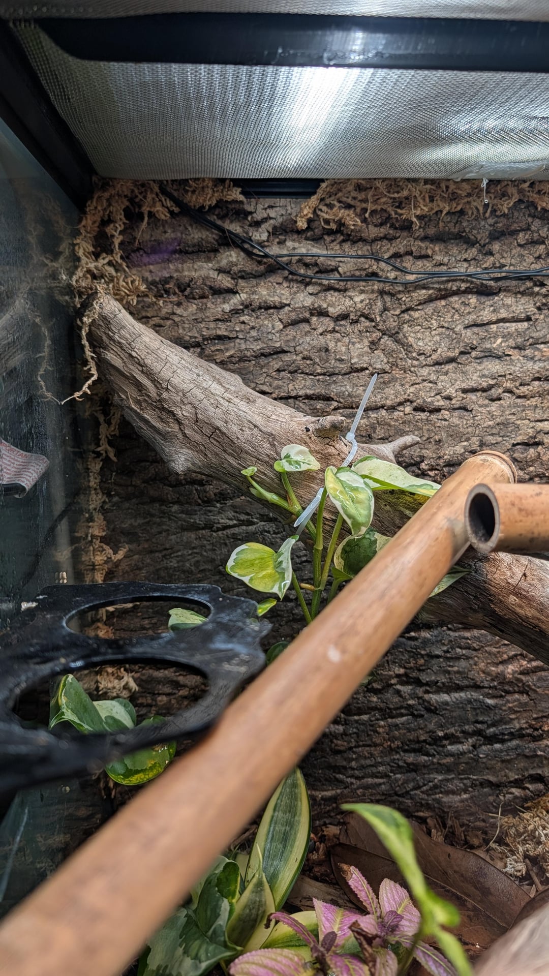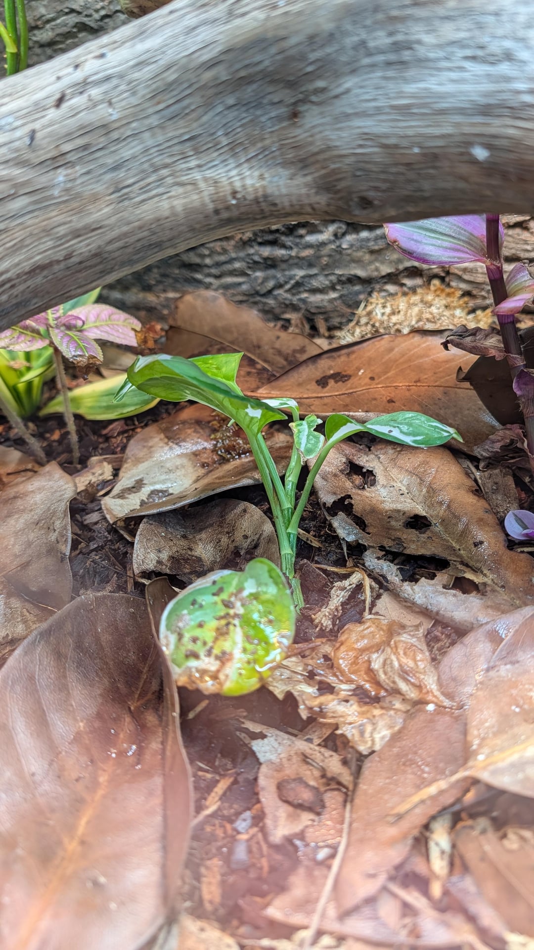 So this is a 36"×18"×24" Exo Terra. It has two double head misters evenly spaced as best as I could. The ABG mix stays damp but not soaked and there is a drainage layer. There's dairy cow isopods and springtails. I have 5x barrina lights on top. My plants except the snake plants just seem to be struggling. This vivarium has been setup for about a year. I do not claim to know what I'm doing by any stretch but am researching and trying and cannot figure out why my plants are struggling? Any insight or tips, willing to answer any questions!