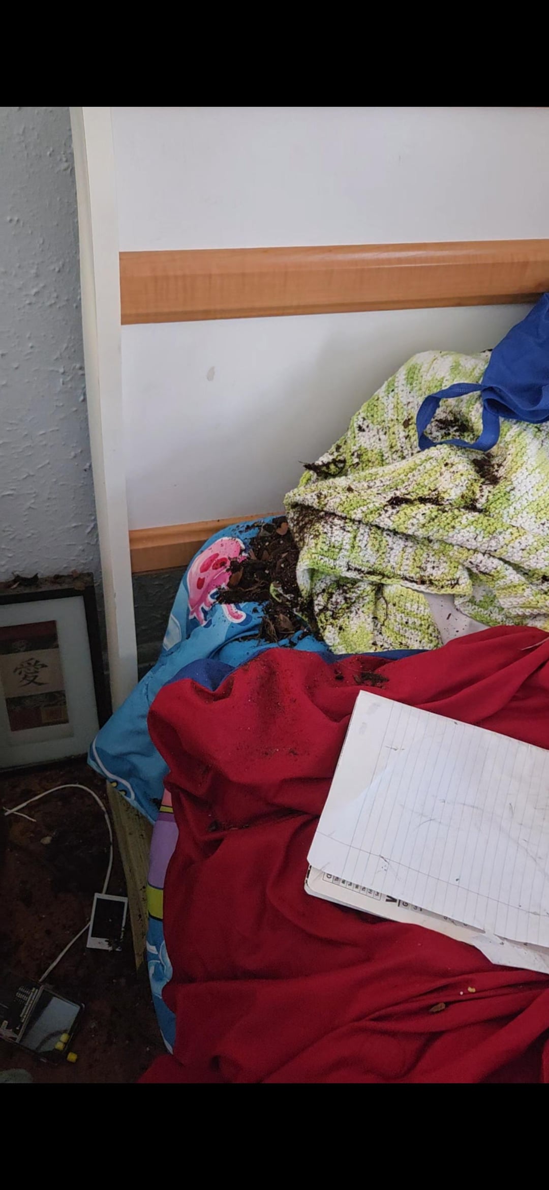 ~45 minutes later he comes back into the house and runs up into the room where i had my plants, and physically fights with my mother near my plants. After a while, he throws my a. dragonscale across the room, where its almost completely ripped of roots and soil as well as the leaves getting cut. (see image). My c. ornata and my p. ring of fire (which got multiple leaves either torn off or ripped) were also completely uprooted and thrown across the room. I come into the room, and when I realized what had happened, I choked him from behind and from there, there was a very intense fight, he bit me so hard that his own lips bled, punching, pulling hair, it was the worst fight we have ever had.