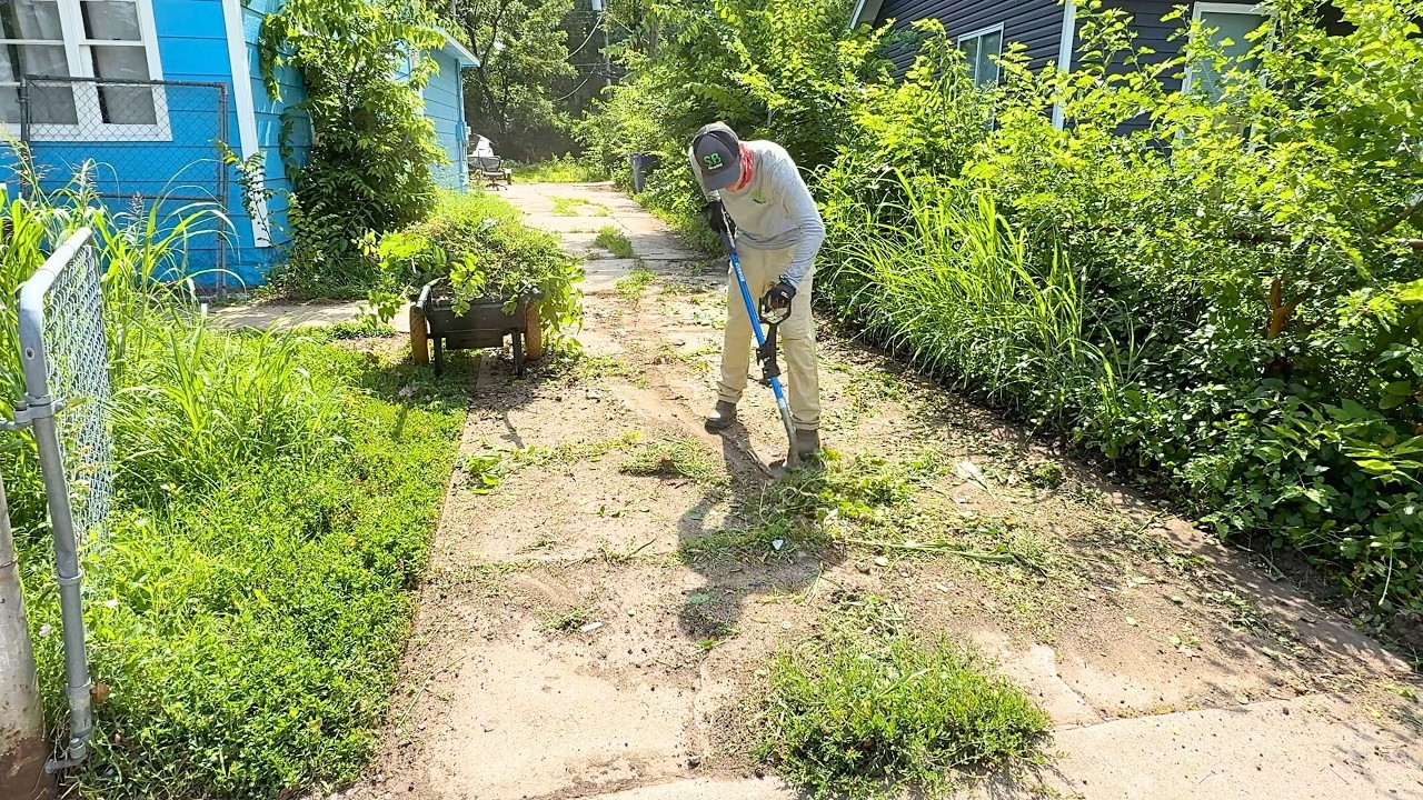 I came across this house and noticed someone was home, so I decided to knock and see if they’d answer. A little girl opened the door, and when I asked if her parents were around, she ran to get her mom. I explained that I own a lawn care business, noticed their yard was getting pretty tall, and I’d love to clean it up completely free of charge. At first, the mom wasn’t sure what to think… until her daughter spoke up and said she’d seen my videos before and would love for me to help. So we got everything scheduled for the next day, and I came back ready to get to work. I edged the front curb and the entire driveway, knocked down all the tall grass, and cleared out the weed trees that were growing through their fence. By the time I finished, the yard looked completely different and will be so much easier for them to maintain moving forward.