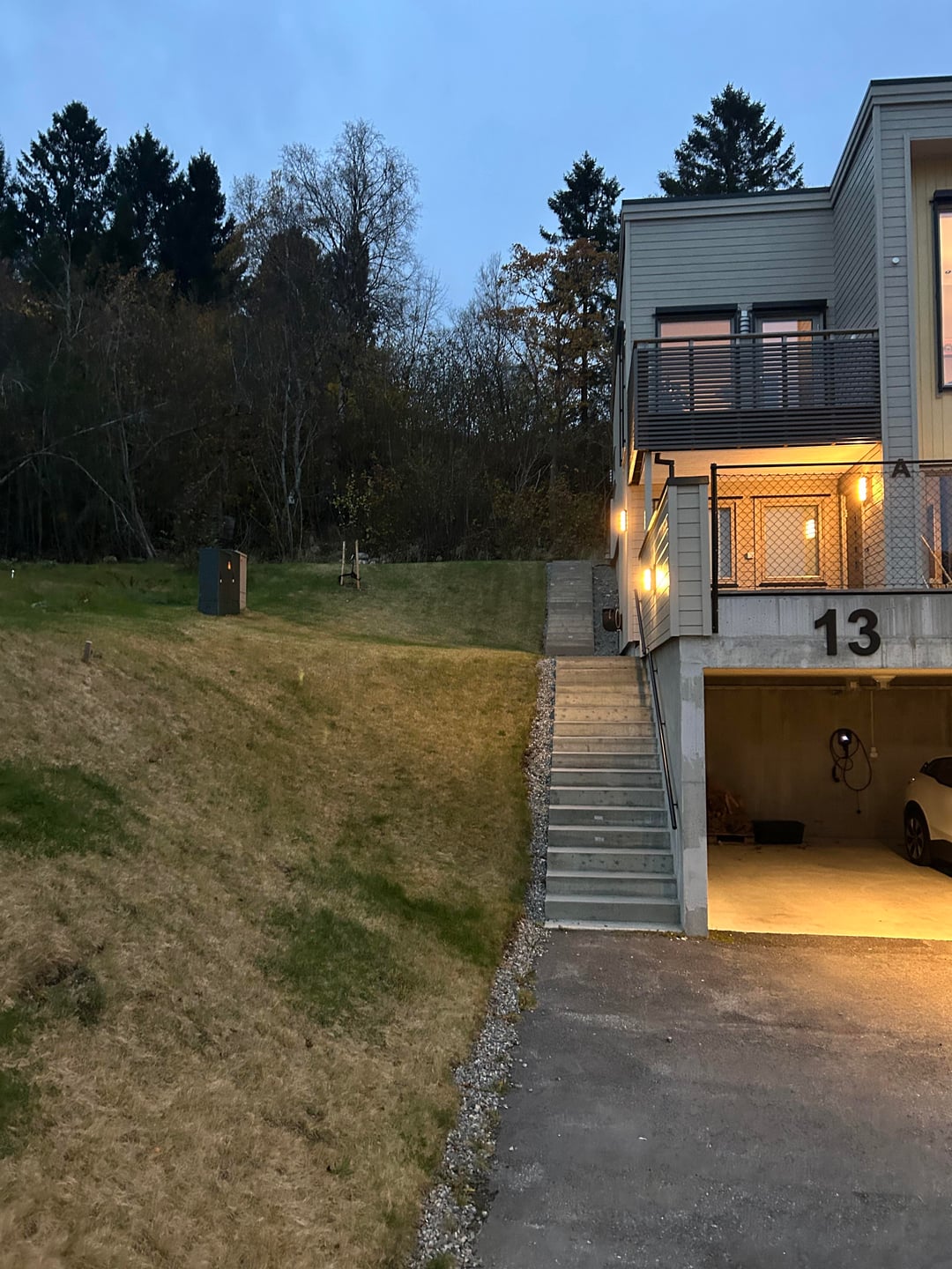 People have suggested terracing, which is a good idea, but you can also embed some stones or flat flagstones in there and plant some perennials around them. I would choose ones that are a little drought tolerant, as things planted on a slope don’t retain as much water. I’ve learned this myself, the hard way. I don’t know what native stone Norway has, or much about your native plants, but if something grows on the side of a mountain there, it may do well on a slope. Always plant things in groups, too or it will look sad.
