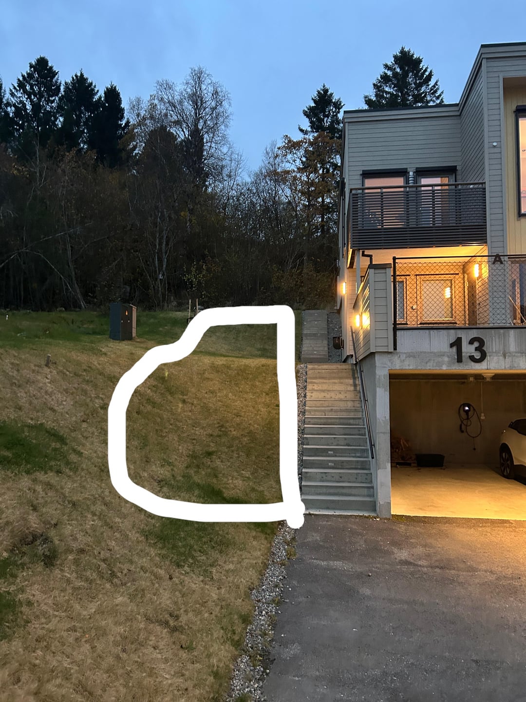 Hi, I would appreciate any help or ideas in how I should go about adding a flower bed/planting something in the marked area. Its relativly steep, and I have no excperience in gardening.