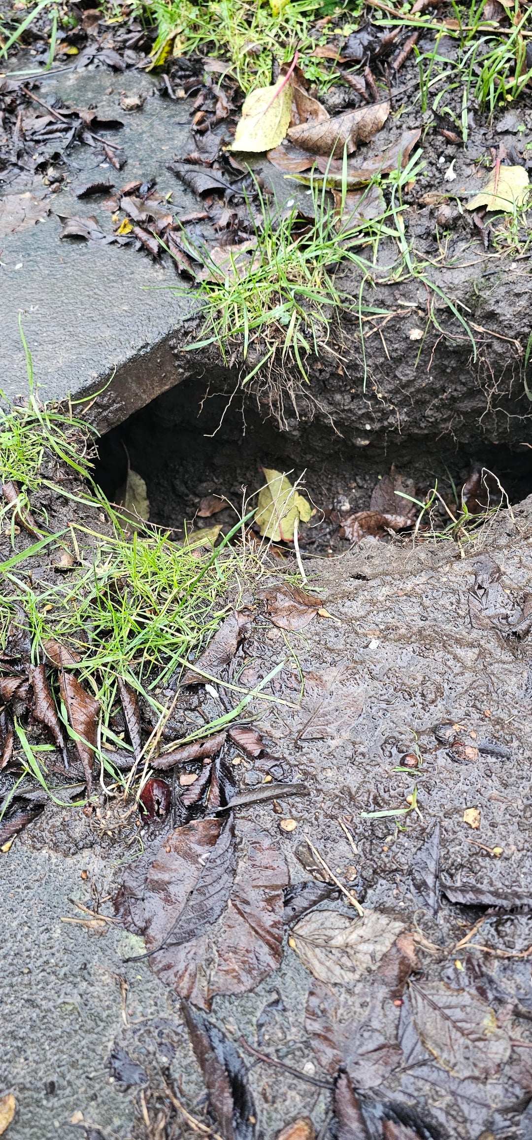 Hole is approx 1-1.5ft length, 0.5-1ft wide and less 1ft deep, no loose dirt/evidence of excavated earth around/in the hole.