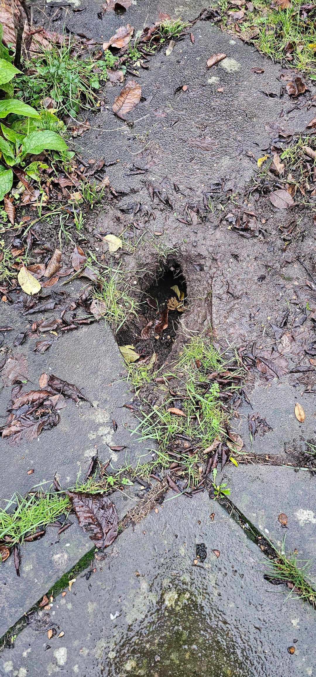 I'm in the process of buying a house which is currently vacant. I noticed this hole has appeared at some point within the past couple of weeks. It appears to be bidirectional from the opening in the ground, one way going underneath the patio.