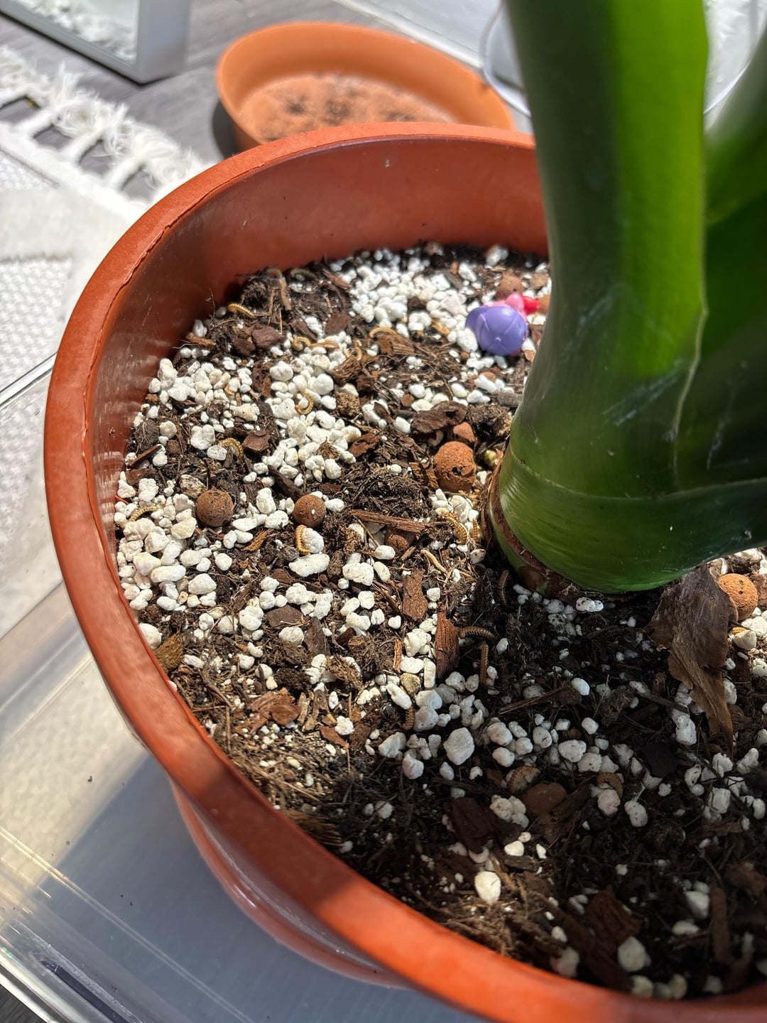 This morning I was watering my plant when all of a sudden I saw these disgusting things in the soil of my plant. She is starting to have yellow dots on the leaves.. What do you think it is and how can I save her ?? (The insects are on the last 2 pic)