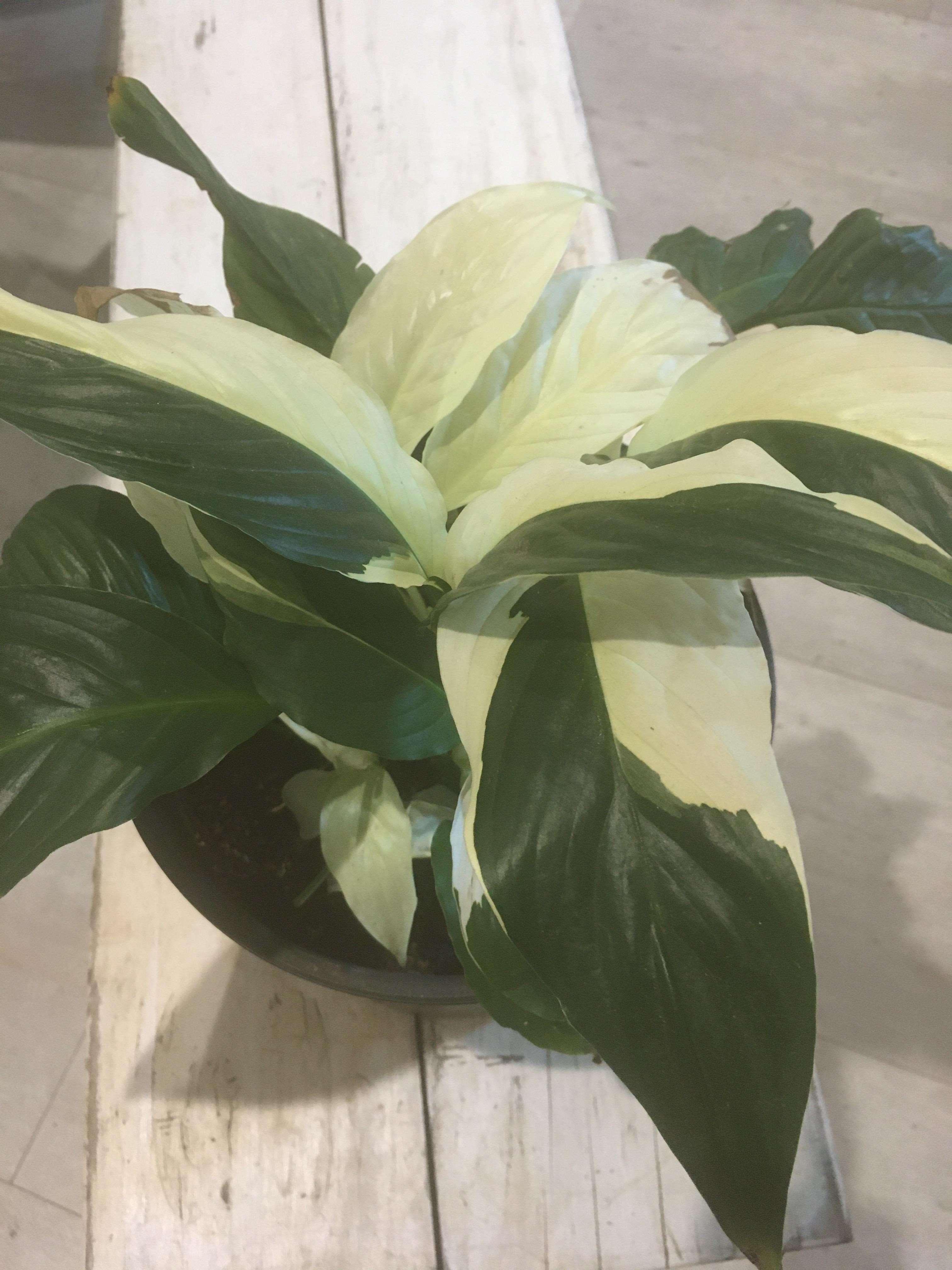 Beautiful! Variegated Peace lily, Spathiphyllum sp.