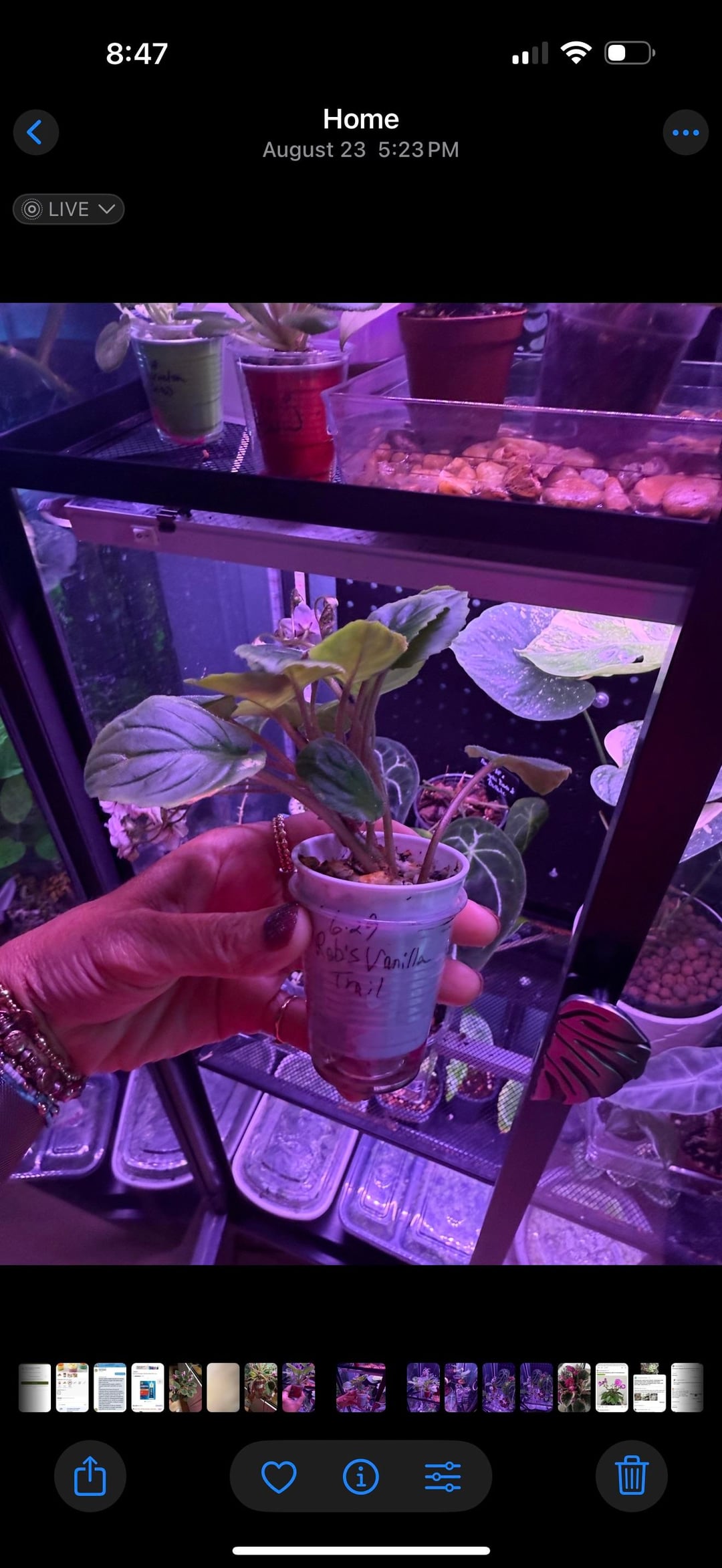 I bought a few AVs in August from a local seller. They were tiny in 2 oz cups. Boy have they grown. First and 2nd photo is Rob’s vanilla trailing AV. Third and 4th photo is Hunters slippery when wet and watermelon snow. 5th are both as babies on August 23rd.