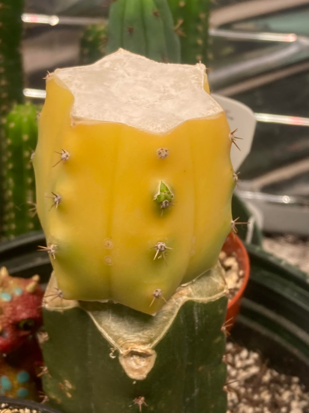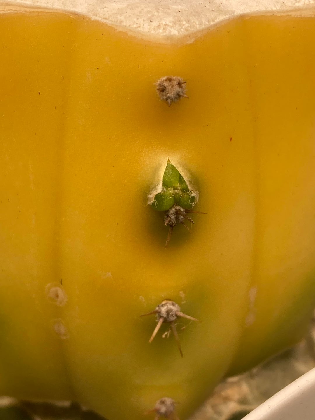 Do green pups usually turn yellow or will they keep a good vari pattern ? This is KK242 came to me as a fully yellow banana 🍌 now as an indoor grown Pedro it has green strips where the shadows are cast from the light. With the new pup forming it looks to be green and I’m just curious should it keep that green or will it also banana out after a bit of growth? Ultimately time will tell but any opinions are welcome 🤗 Thanks ahead of time for checking this out have a wonderful day today 💚💯🌵