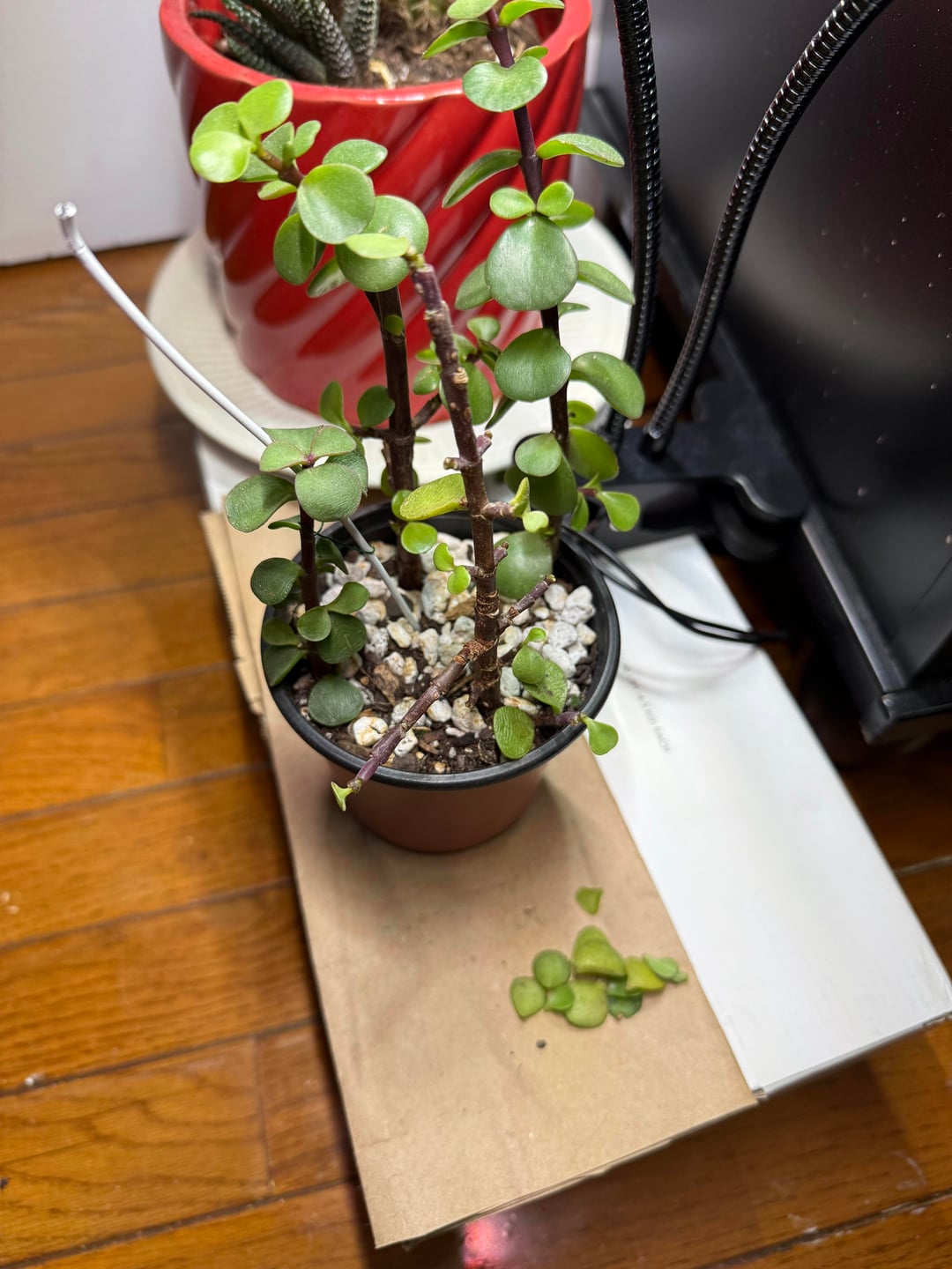Not the same plant but similar growth, it’s my stock building seasons so my jade pups get topped chopped and propped in an exponential manner. They aren’t hard.