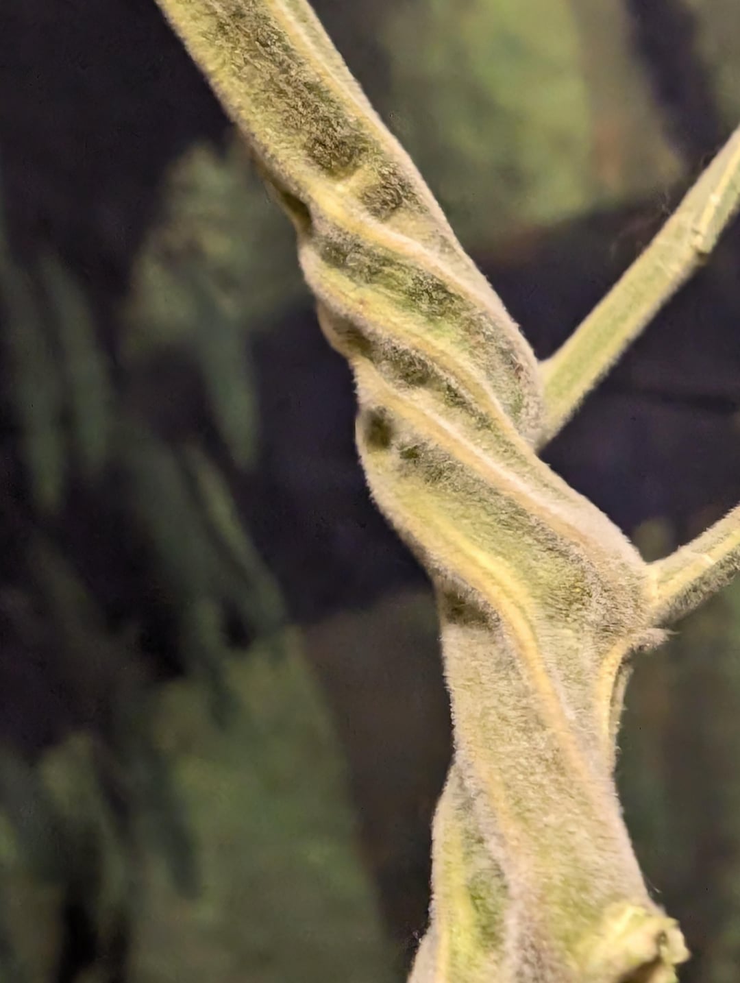 At first I thought this had just grown all twisted like this because of shade or something but then when I counted the sides of the stem it has five instead of four (I marked the very bottom of each side with a different color of acrylic dot to make sure I wasn't just counting badly lol)
