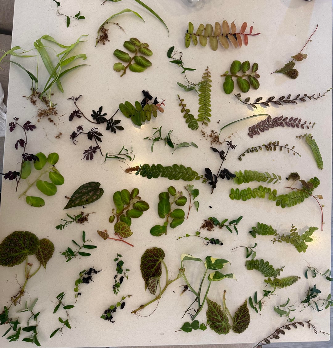 For those marcgravia cuttings(the long ones with little oval leaves like for example the one at the very top with those red leaves) you will want to get it in a humid container and lay it on sphagnum to get it to root. Then just let it grow and get cuttings from those.
