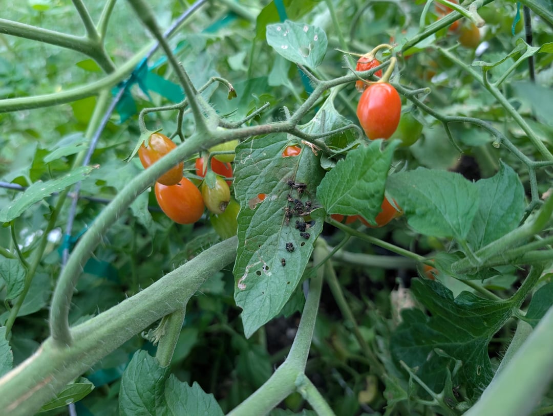Look under the leaves, they start off teeny tiny but by the time the very hungry caterpillar has eaten that much it is a big fat monstrosity the size of your thumb. RIP your tomatoes.