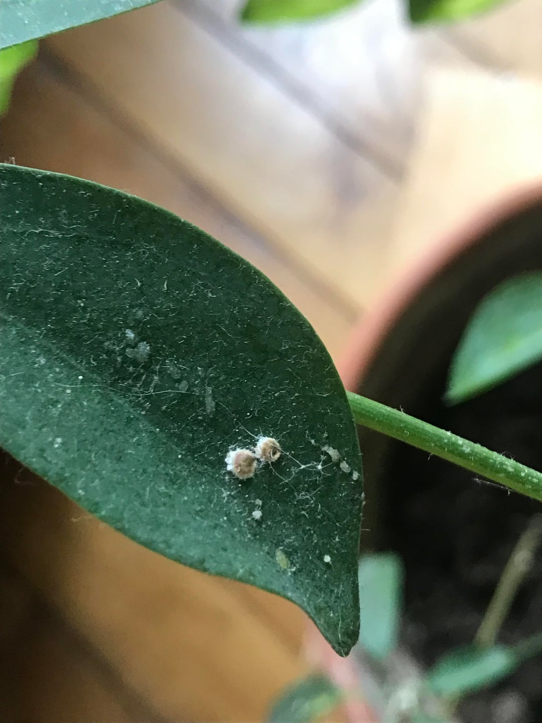 Scale! Poke them with alcohol on a cotton swab, or just spray the plant down with alcohol 😊 keep it out of direct sunlight after you’ve put alcohol on it, cus it can burn the leaves