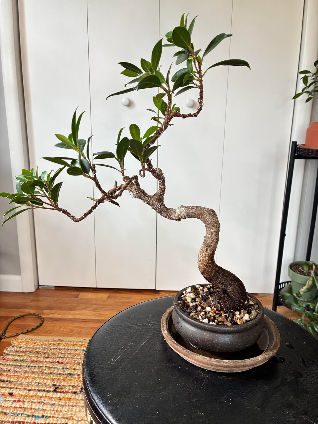 Just repotted my ficus into a much smaller pot but did not have to remove many roots as the current pot was much larger and it hadn’t filled it out yet. I did remove some branches from the tree, my grow room is currently 80 degrees and 50-60% humidity so the ficus have been growing well even for winter. I noticed many new white roots beginning to sprout during the repot so the tree appears quite healthy.