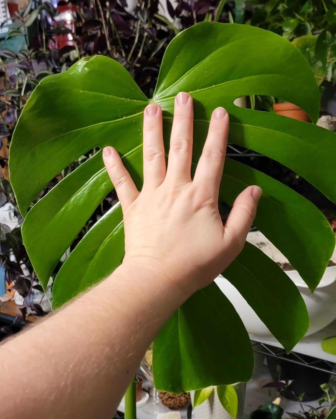 I can't wait to see how big her newest leaf is gonna get! It's still not done hardening off! I didn't realise how much she's grown until I went to send photos to my friend who gave me the cuttings originally.