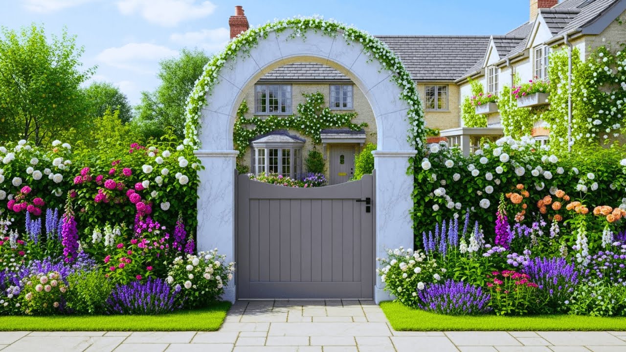 #GardenArchway #LuxuryHomeDesign #CottageGardenStyle #OutdoorInspiration #HomeEntranceDesign