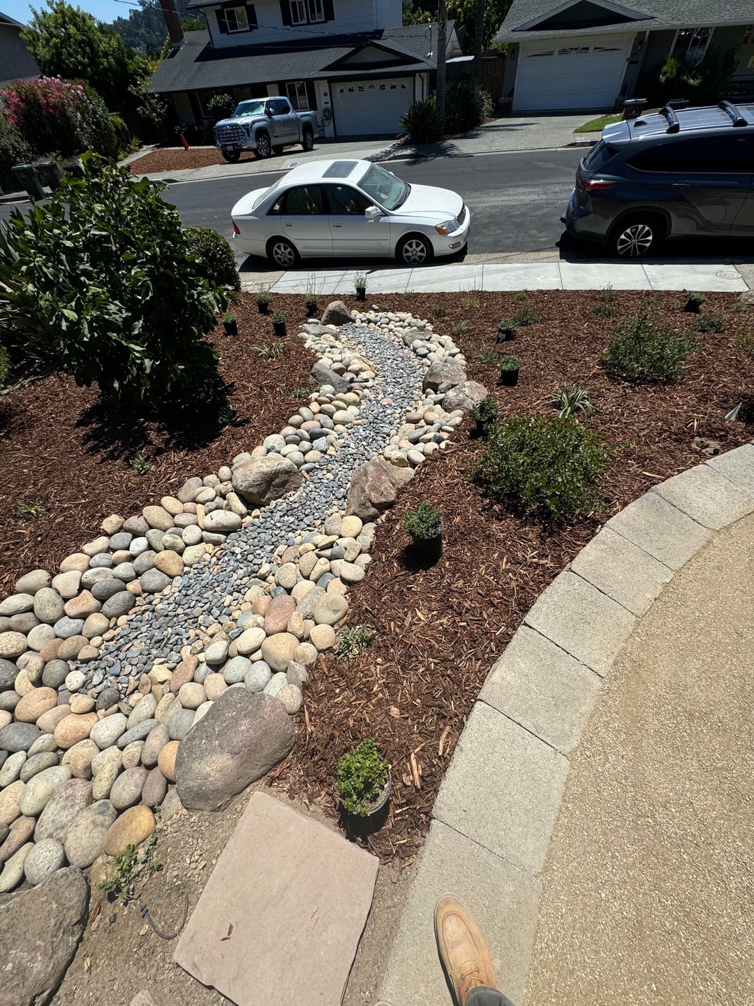 Looks nice, but I hate all the mulch. Wish it was a complete rock garden.