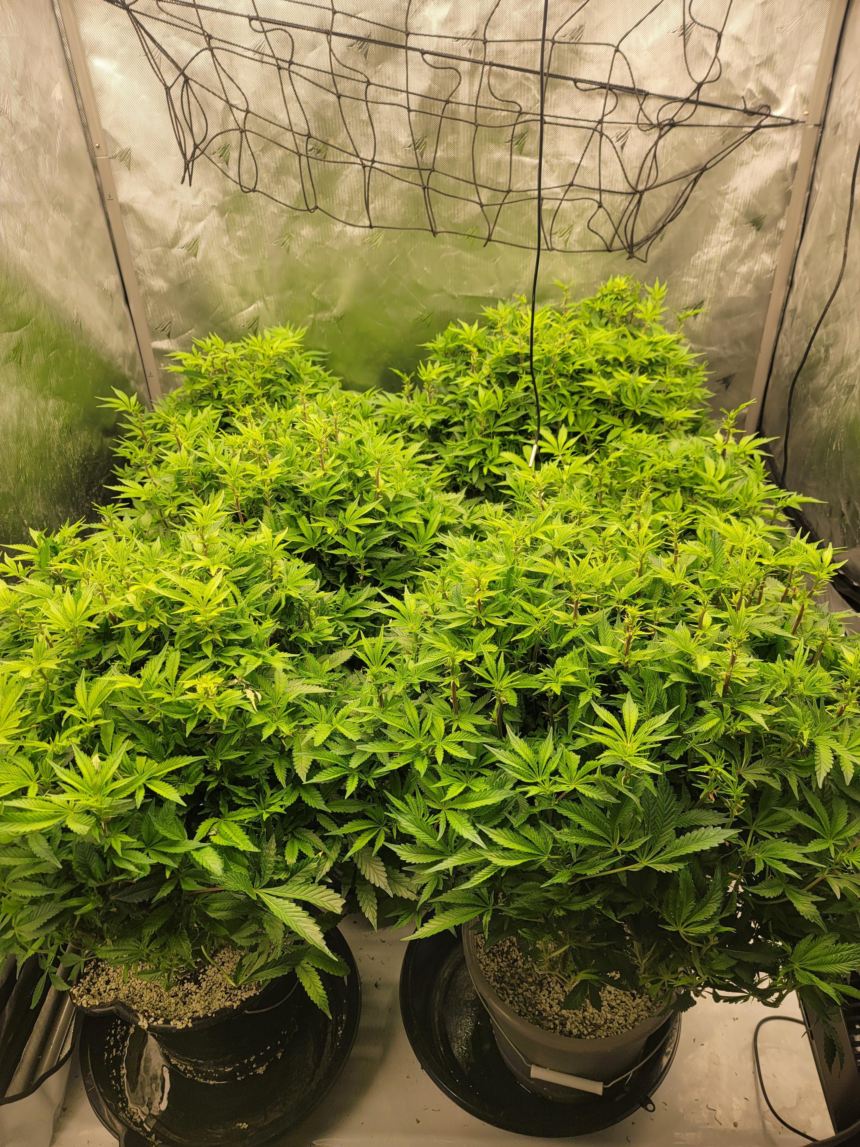 1 1/2 weeks into stretch and flower. Last round of leaf top pruning is done. Maybe one more round in a couple days, maybe not. I might just use props under rhe runoff basins to get rhe last 2 level if it doesn't happen naturally in the next 1 1/2 weeks.