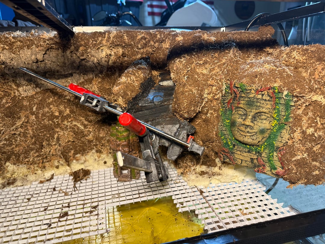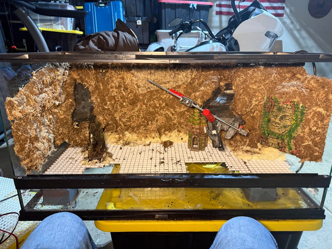 Question: the left waterfall doesn’t make it all the way to the water section, so the water falls on the land section. What substrate can I put that will constantly be wet? Or maybe you have a different idea to fix this.