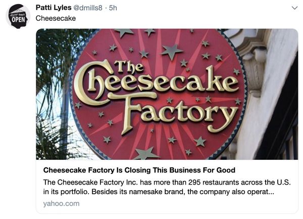 Earlier that day, a blog named Eat This, Not That! published a story with the headline, “Cheesecake Factory Is Closing This Business For Good.” Yahoo hosted a syndicated version of the same article.
