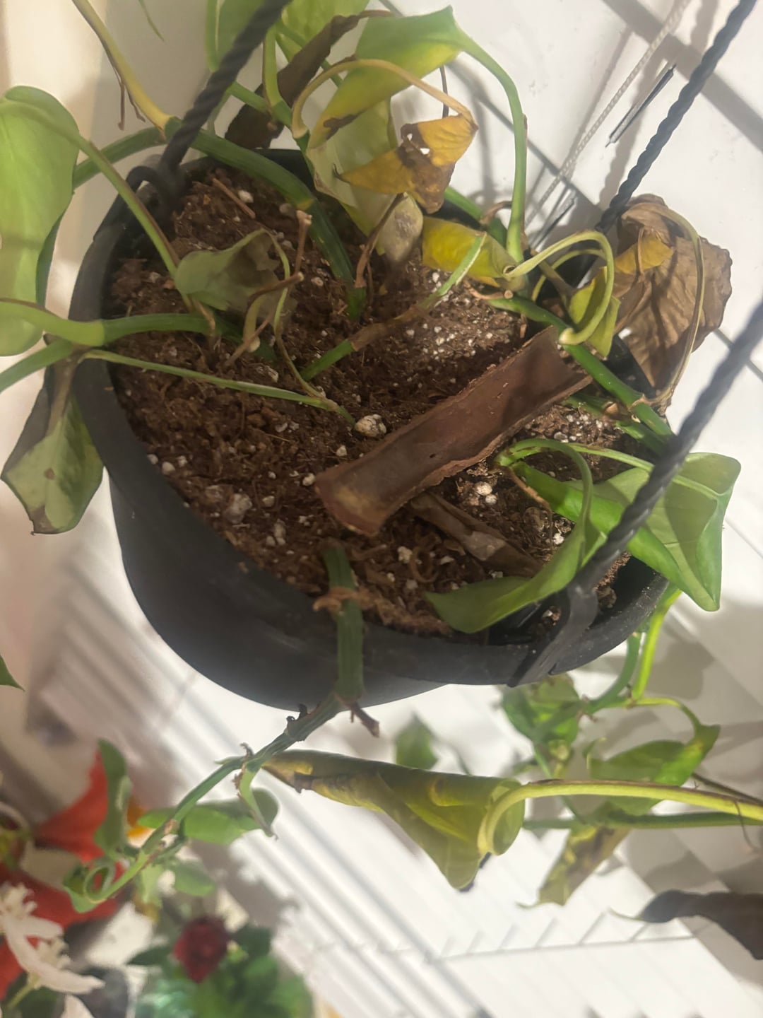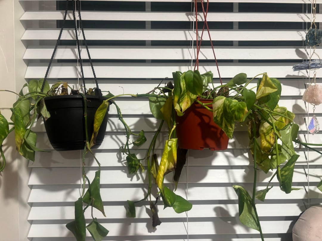 These two pothos seem to be absolutely struggling, and i canāt seem to find out why this is happening! They are in a south facing window, and their soils are actually very dry but for some reason whenever i water them it seems like the drooping and yellowing leafs just get worse and worse. I litteraly have no idea what else to do, i know thereās not much information but anything helps