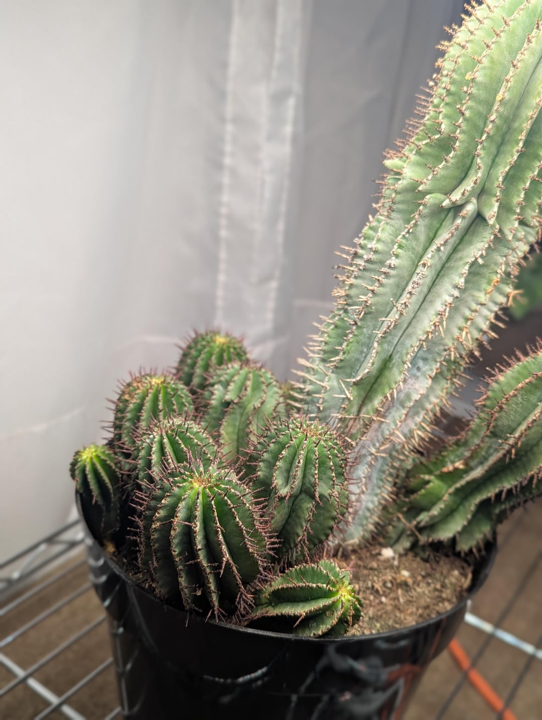 If this is 100% powdery mildew I might just chop the big one and treat/isolate the pups. I'm not particularly attached and would rather keep pests in my collection down. If it looks manageable, I do have the arid environment needed to hopefully treat it, but if it's going to take months of isolation I'd rather reduce the risk of spreading.
