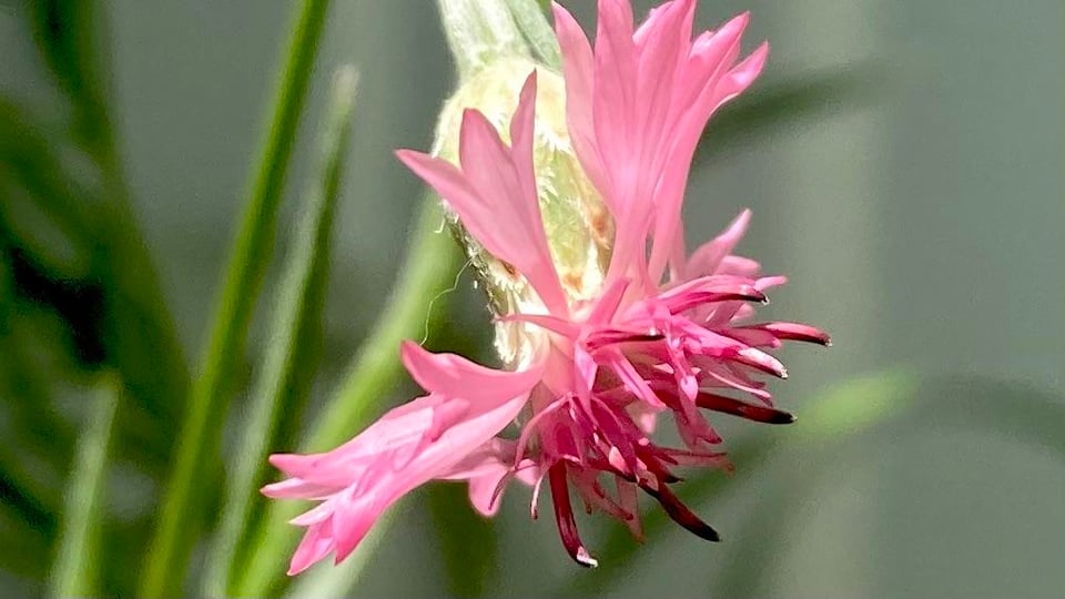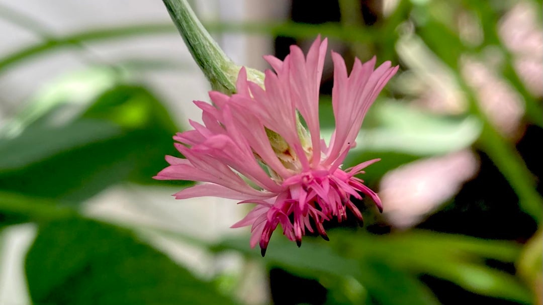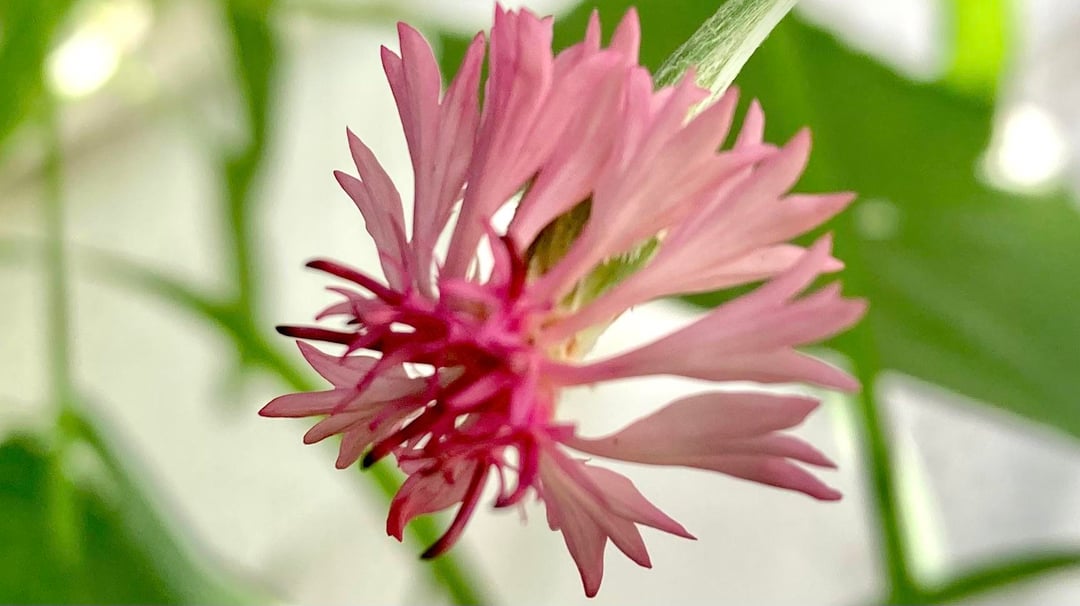 Based on the unique fringed petals and the shape of the flower head, this gorgeous pink bloom is a Cornflower (Centaurea cyanus), also known as a Bachelor’s Button. While most people associate cornflowers with the classic “cornflower blue,” they naturally appear in shades of pink, purple, and white too!