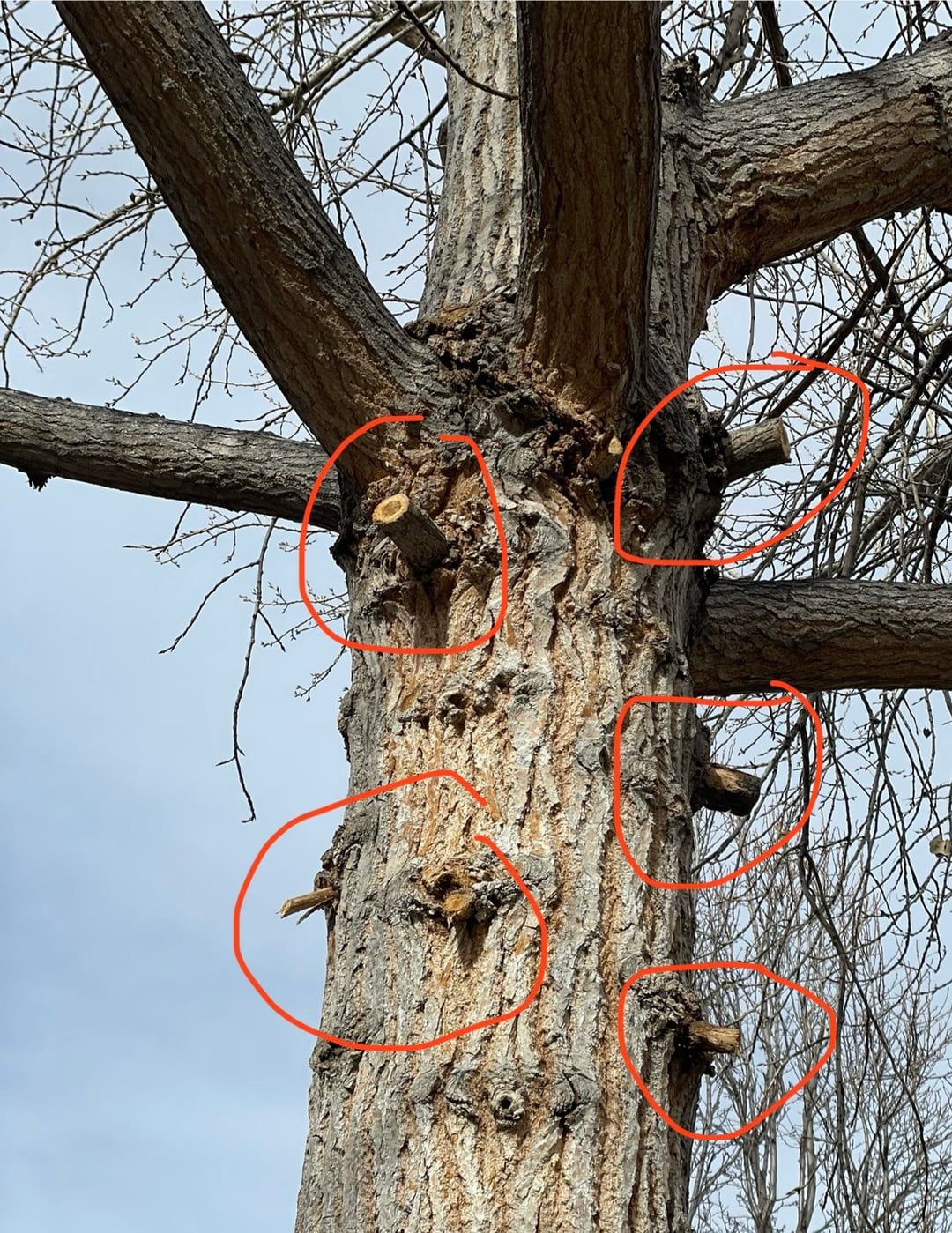 My roommate decided to be a tree trimmer and hacked away a bunch of branches on our cottonwood. A lot of the branches were alive which is a bummer. No idea why they decided it needed a trim, the tree trimming tool has been hidden so no more unnecessary trimming is done lol.