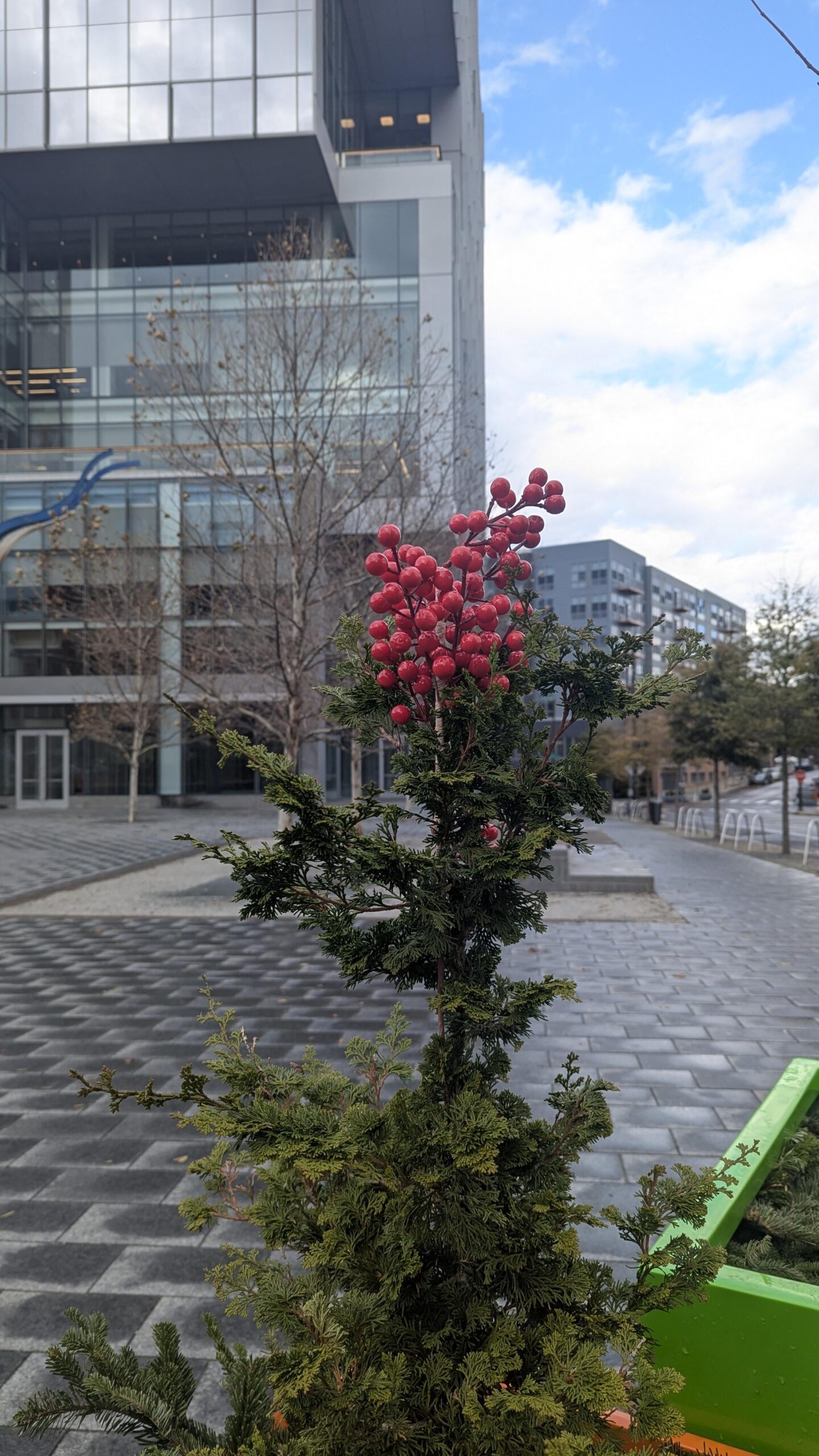 Philadelphia, Pennsylvania by kumo_yunyun plants IdentificationWhat's this plant 2 Comments SEA2COLA 1 day ago It looks like two different things here. The tree itself looks like Hinoki false cypress (Chamaecyparis obtusa). The red ‘berries’ are artificial and attached to the stake supporting the cypress. DowntownComputer5819 1 day ago The berries are fake.