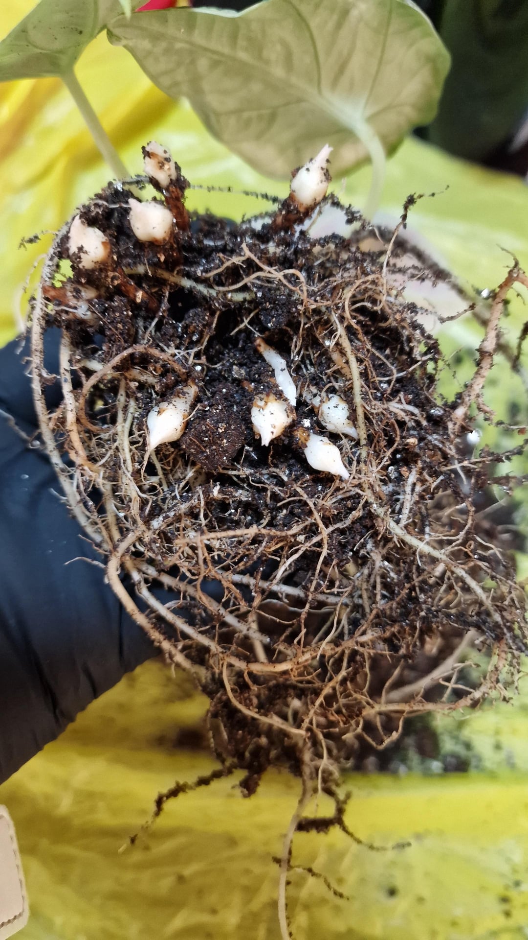 I was about to repot and was really surprised how many corms she already produced. Bought her as a baby plant in October this year. The first pic is the newest leaf by OnlyPlants_OP alocasia 2 Comments TropicalSkysPlants 2 days ago 👏👏👏 I am *empressed* lol! Put me on the corm list! PLANTMOM1963 2 days ago WOW… she’s a beauty, and I would definitely have me a bunch of babies with all those corms.😍🪴🌿