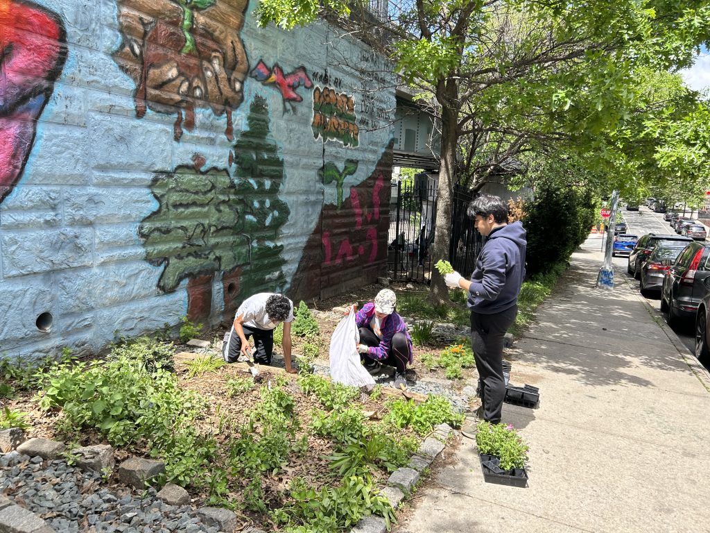 The space we cared for sits along 69th Street, right up against the CSX tracks, a narrow patch of land most people barely noticed. Before we got involved, it was completely choked with overgrowth and trash. Working with the Jackson Heights Beautification Group, we cleared the area, planted pollinator-friendly perennials, and slowly turned it into a little oasis.