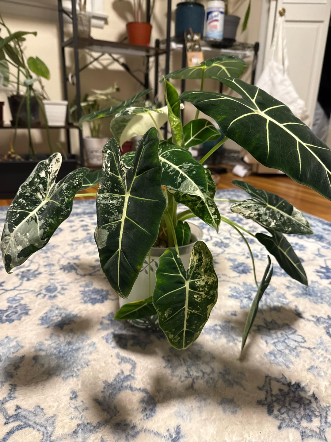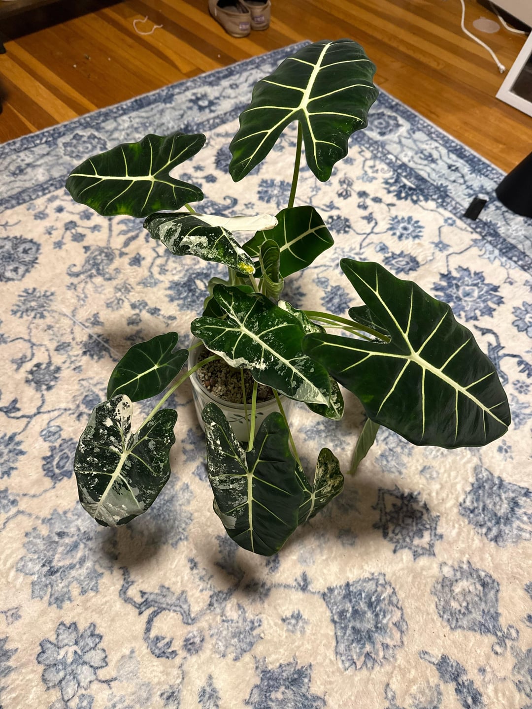 I transferred most of my alocasias to pon a few months ago, and im not sure if a frydek corm was dropped into my variegated pon, but she has been exploding for months and never fails to make me happy every time i check on my plants. Anyways i just wanted to share my pride and joy 🙂