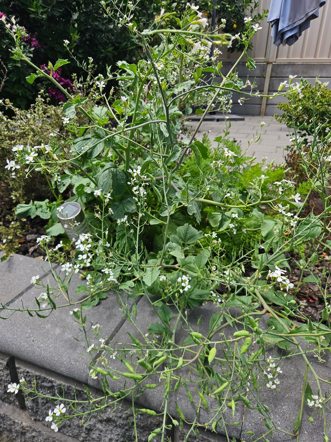 Radish, gone to seed. Leave them for more radishes.