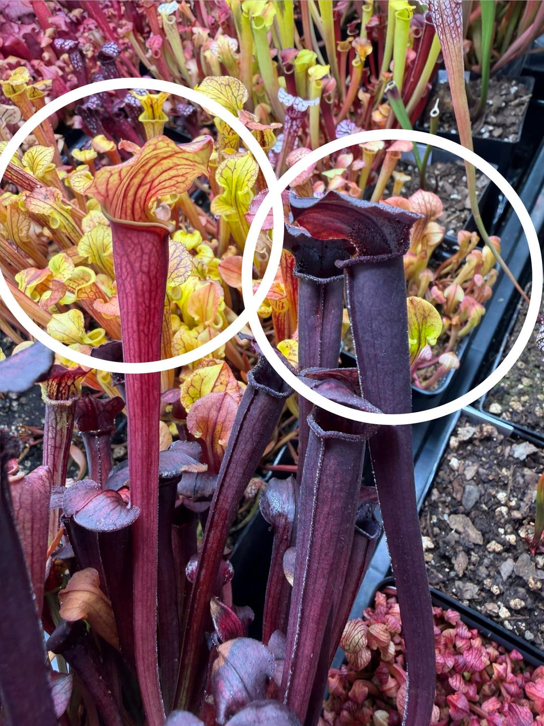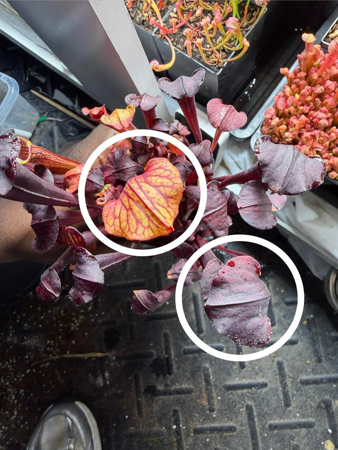 The traps circled in pics 5 & 6 are growing from the same crown. They come out red with yellow lids and heavily veined (like black widow) then transition into their extremely dark color 🔥🔥🔥🔥🔥🔥🔥🔥🔥
