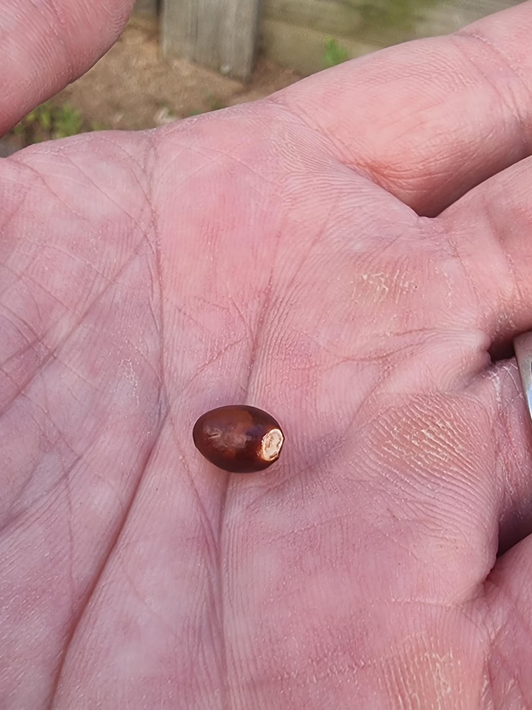 Sorry, no photos of the plant (yet). I think they were left by a bird. I don't know how else they could get to the spot in my garden where I found them. by hyper_shock plants IdentificationWhat's this plant 4 Comments lwright3 1 day ago Longan fruit seed, maybe? Imaginary_Tea_8350 1 day ago Magnolia seeds? D2Dragons 1 day ago They look like longan, rambutan, or lychee seeds. All those fruits are related and the seeds are pretty similar. cerephic 1 day ago agree this looks like someone threw seeds from lychee they just ate into your yard.