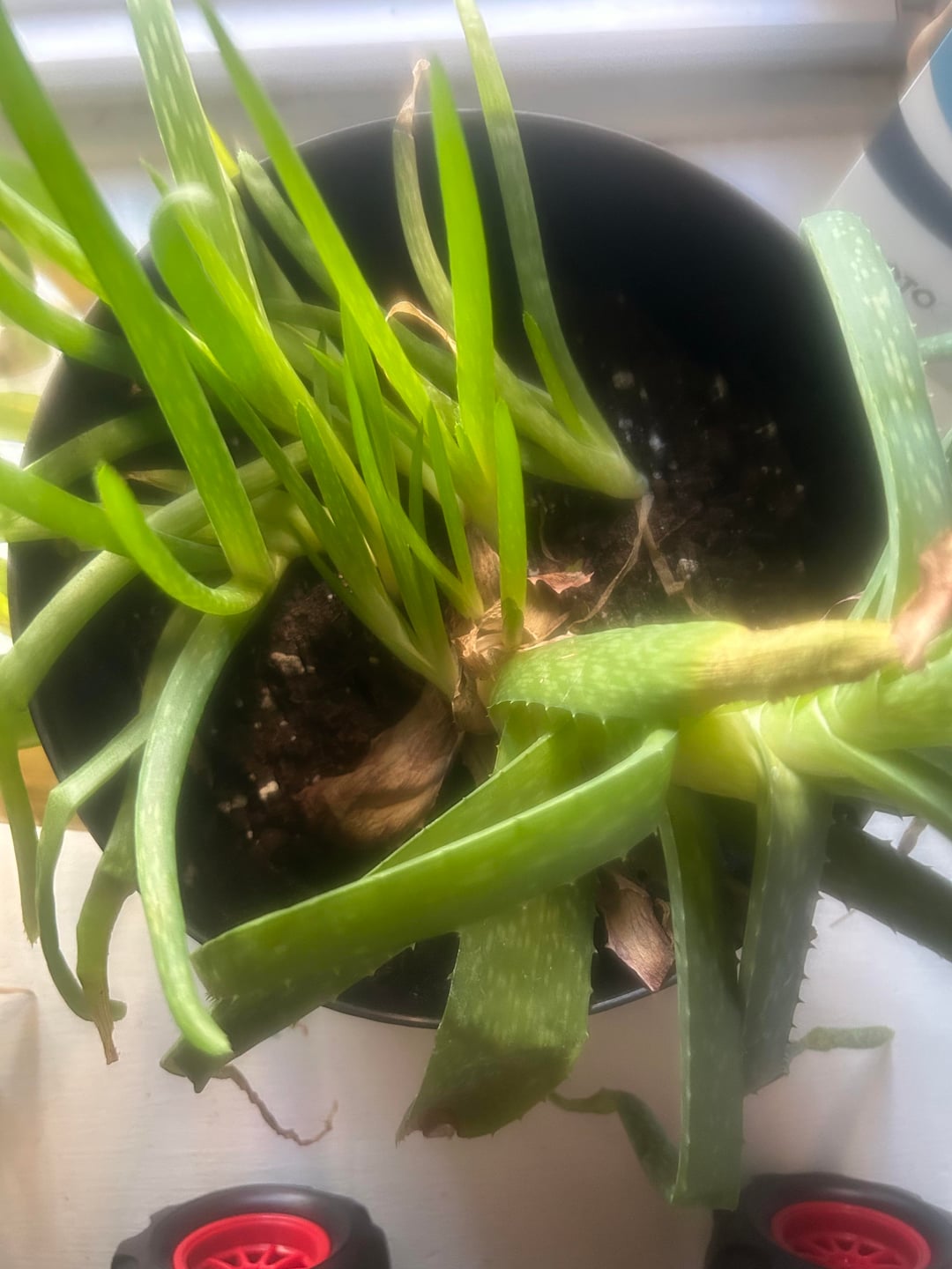 The withering at the ends tells me that it is definitely getting overwatered (I would water it once every two weeks which I know is too much now) but after looking through this sub I am wondering if pup overcrowding might be an issue aswell? As before I thought overcrowding was okay when it came to aloe Vera since they tend to grow like that in their natural habitat but I am guessing it is different when they are potted.