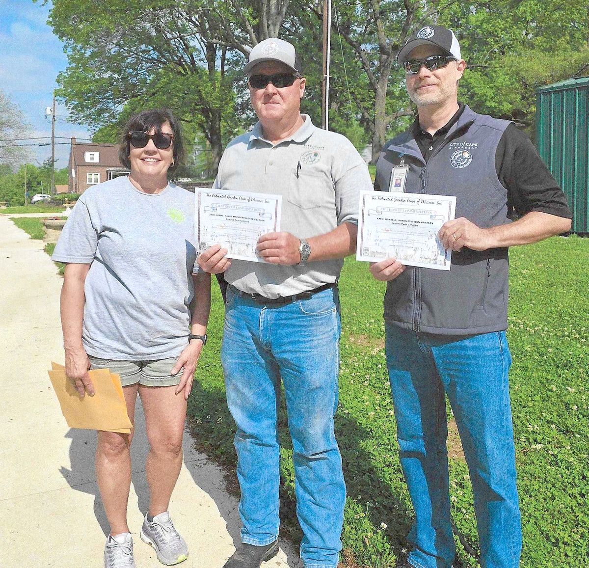 Ramblewood Garden Club presented Jack Hamm and Kaed Horrell each with a citation for all the work they have done to help keep the parks in Cape Girardeau looking nice. Both men help Ramblewood Garden Club with working at Capaha Garden Park. Jack is a leader of the parks maintenance crew. Kaed is the parks division manager. These two men have helped our club work at Capaha Park with needed items and labor. The parks are beautiful, and everyone who walks through will enjoy them.