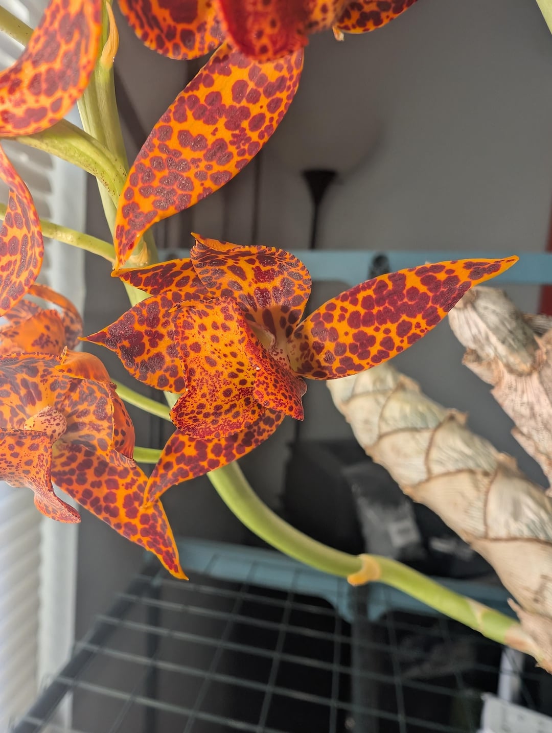 The fiery orange and spotting on this is mesmerizing in person. The camera really does not do it justice. It does have a fragrance. I don't think it's something that a lot of people might enjoy. What I get from it is a mothball with a touch of licorice. It's strong enough that it can be detected about 5 ft from it. Overall, this is an excellent early Christmas gift that this plant can give me.