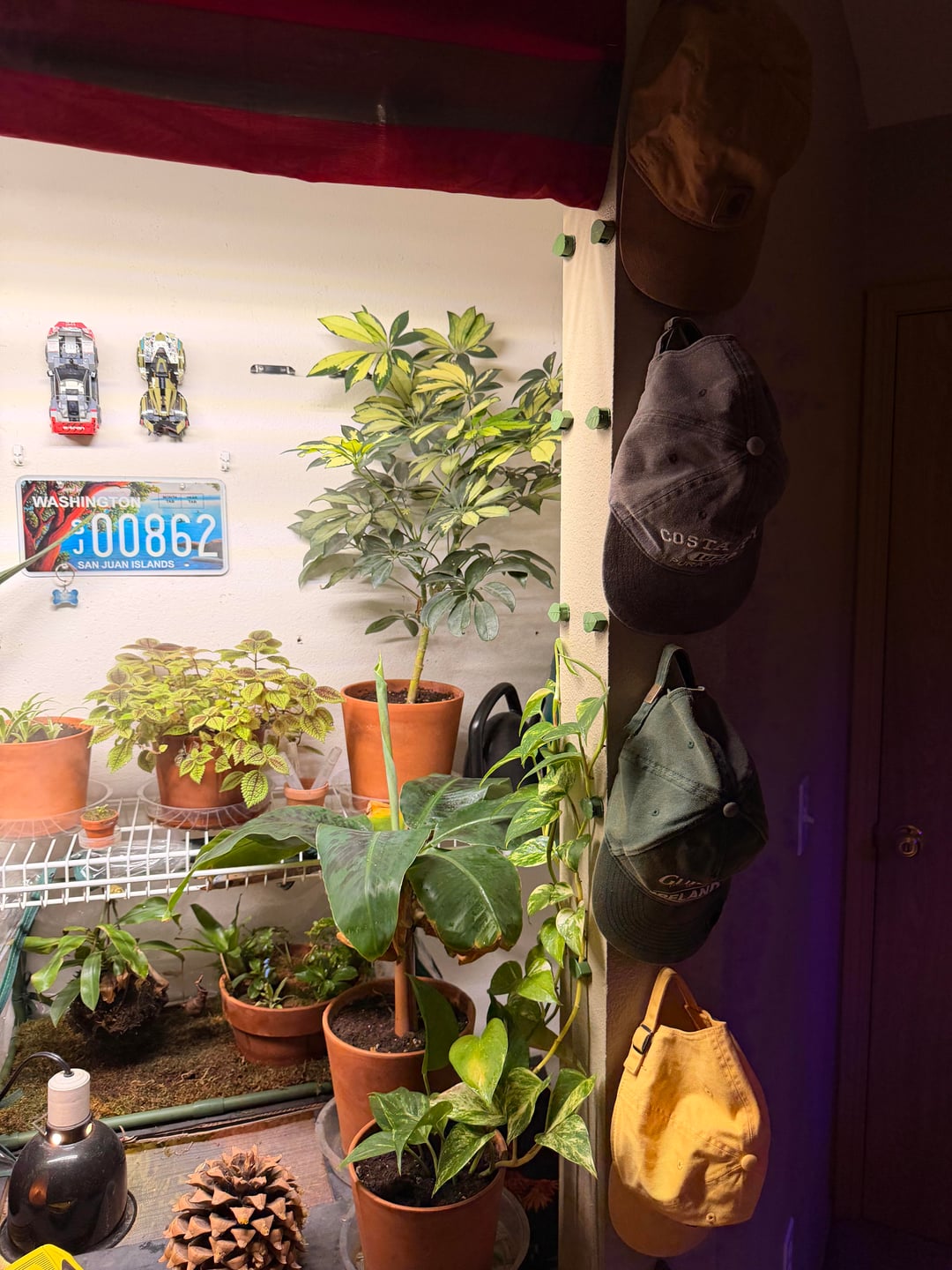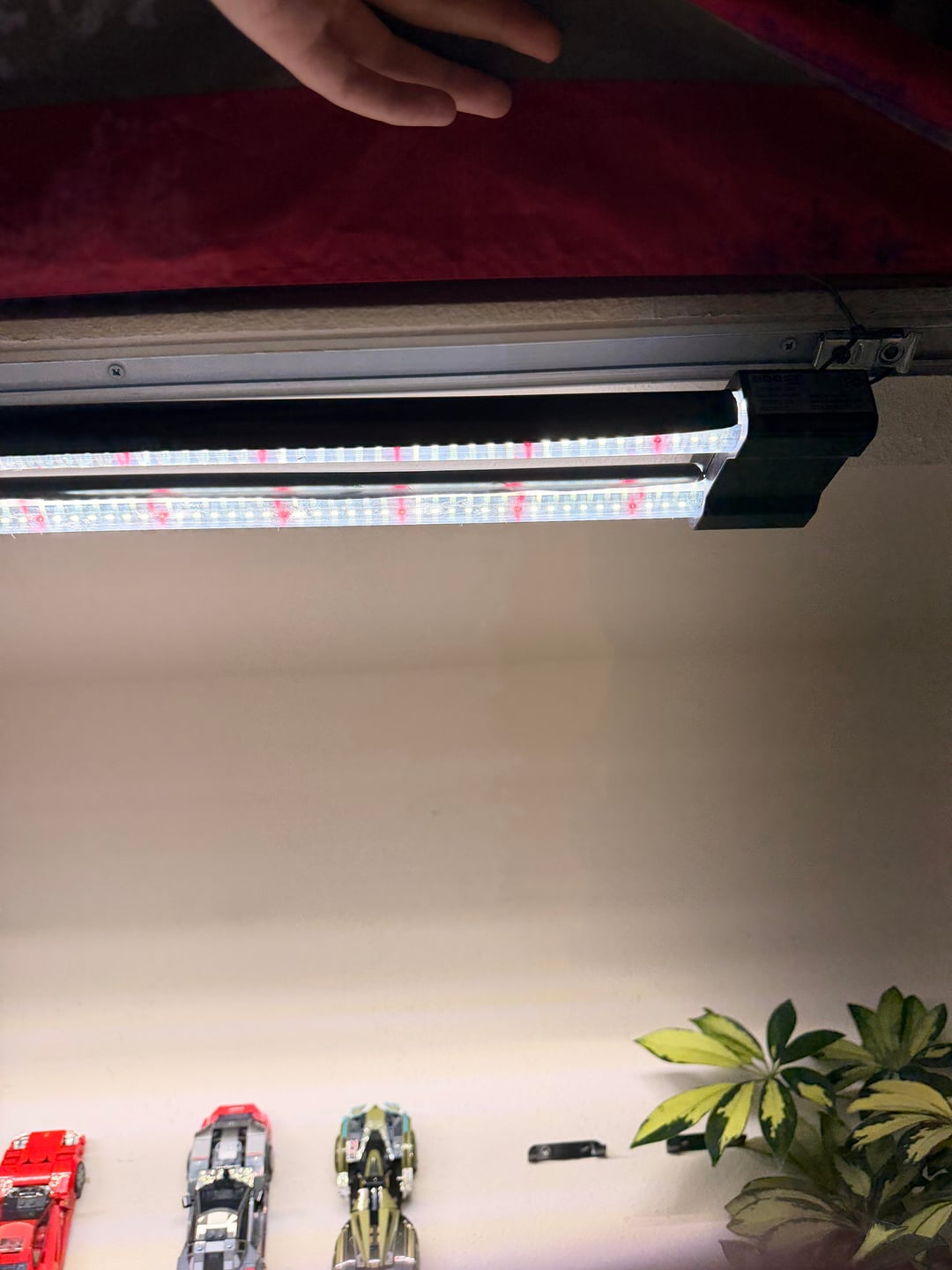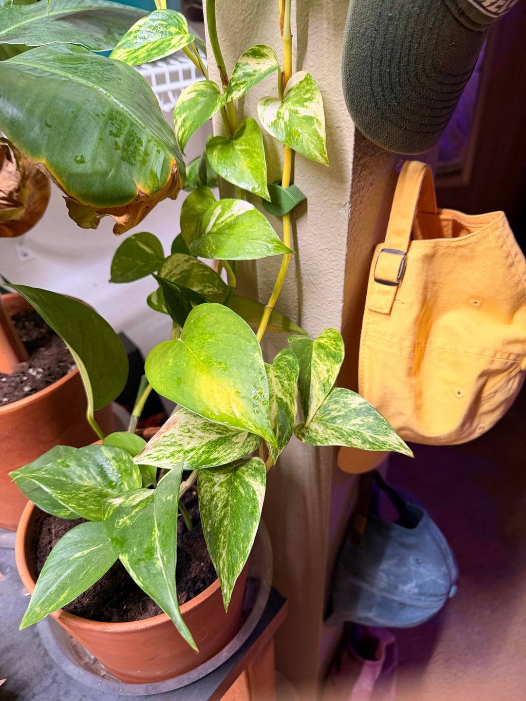 This is my plant setup I have a light above but my pothos has been just yellowing and dropping leaves towards the base but not directly on the base, you can kinda see the gap not sure why?? Watering or lighting issue?? Too much light maybe?