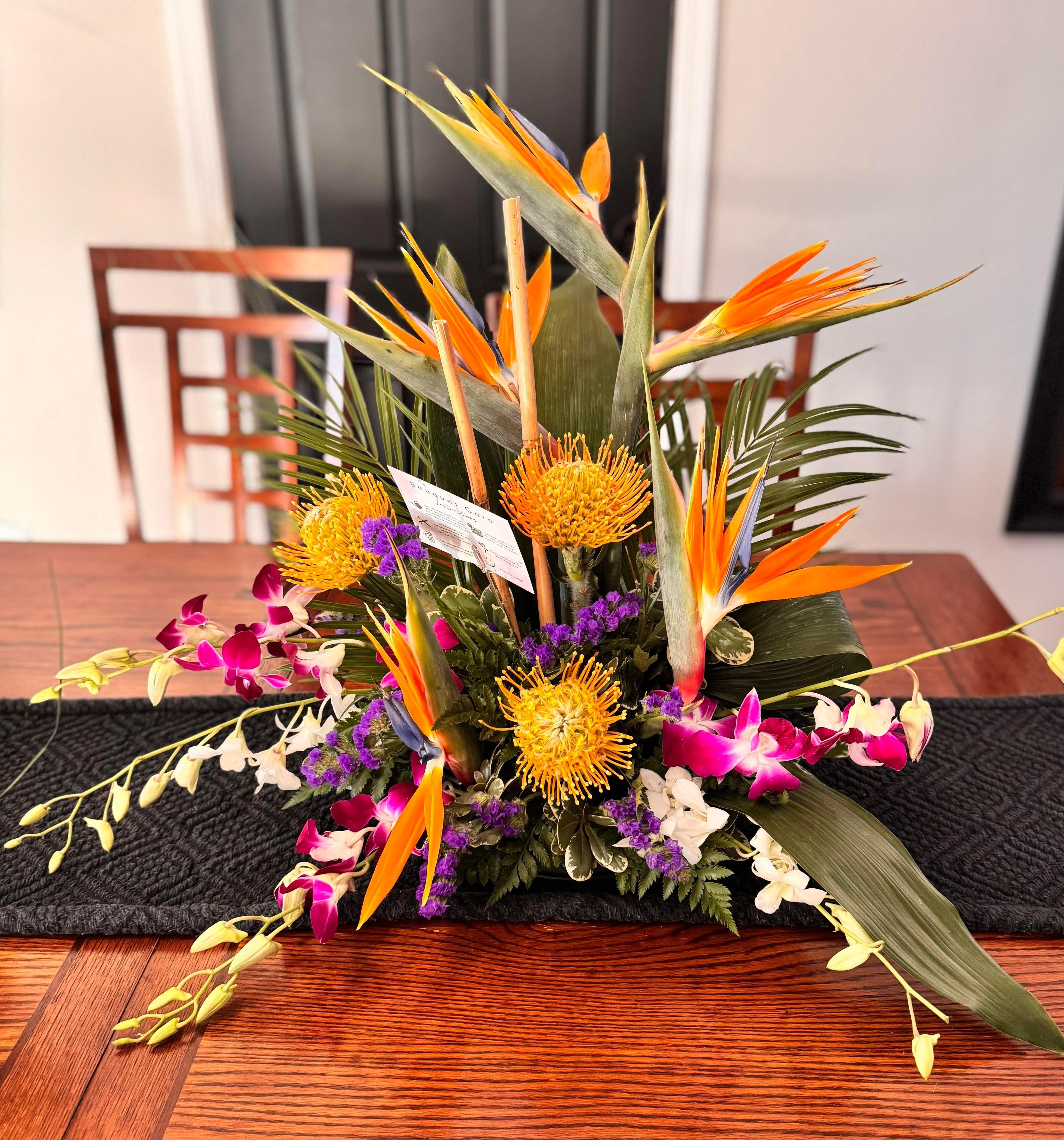 I ended up choosing Casa Adobe Flower Shop(Tucson, AZ), and they did an amazing job. Many places didn’t have tropical flowers in stock, but they were able to put together the perfect Mahalo tropical arrangement for our family funeral. We added a few extra blooms, and the final piece turned out even more beautiful than expected. It looked perfect placed behind the urn. Super happy with how everything came together. 🌺🕊️