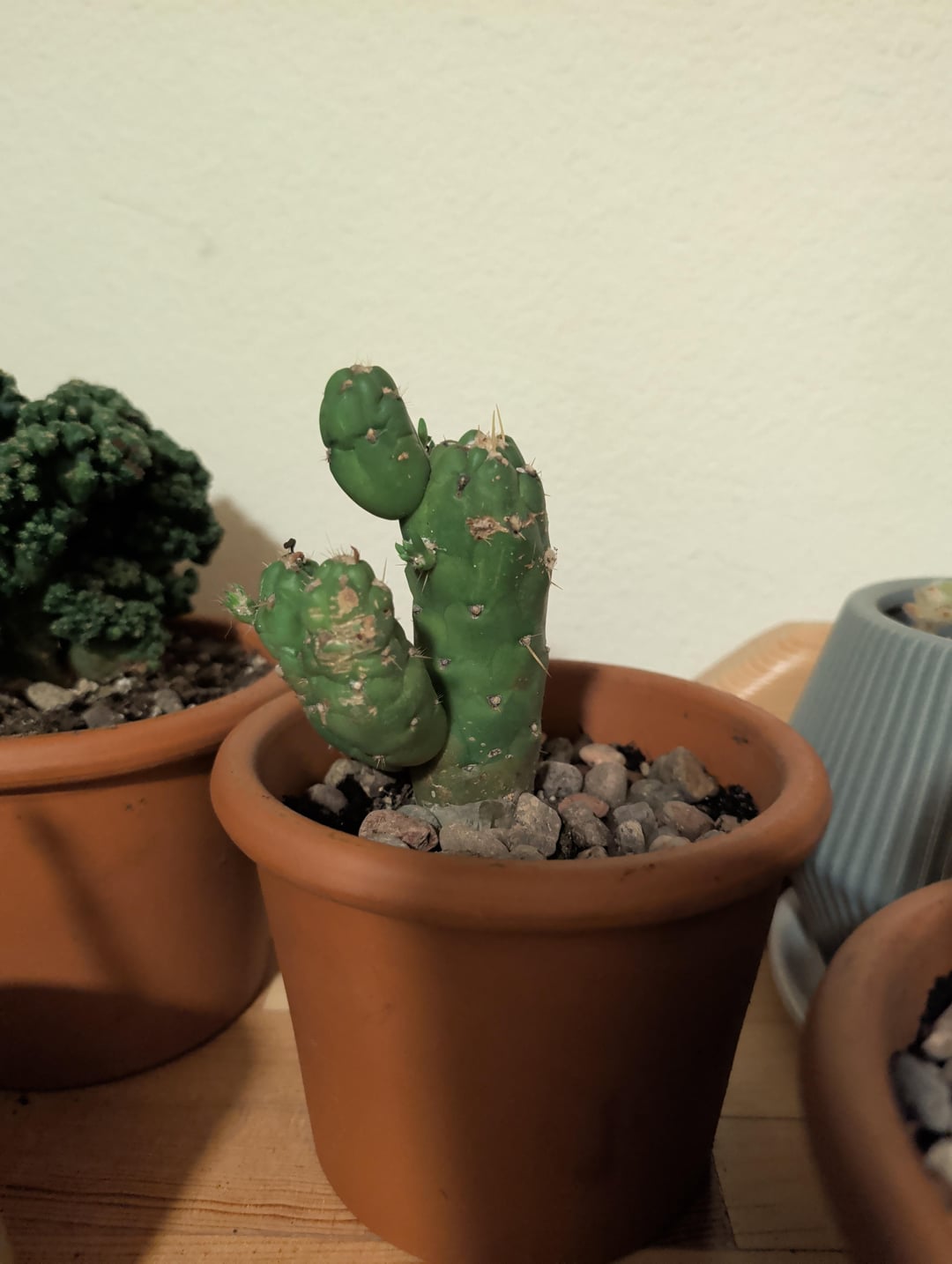 Got from home Depot and can't tell exactly what it is by FieldParticular4336 cacticactuscactuses 7 Comments No_Comfortable5313 2 days ago Some sort of opuntia 2gay2play2day2 2 days ago Looks like Cylindropuntia to me! Nasty glorchids! TephroGeo 2 days ago Whoa, also curious. Looks almost like a monstrose’d eves needle in a way Dudesweater 2 days ago Looks like a struggling eve’s needle cactus to me. Deathed_Potato 2 days ago Austrocylindropuntia subulata monstrose ‘Gumby’ revned911 2 days ago Eves needle! Fun plant. Easy to propagate. Se7enAteThyme 2 days ago That’s a tomato worm.