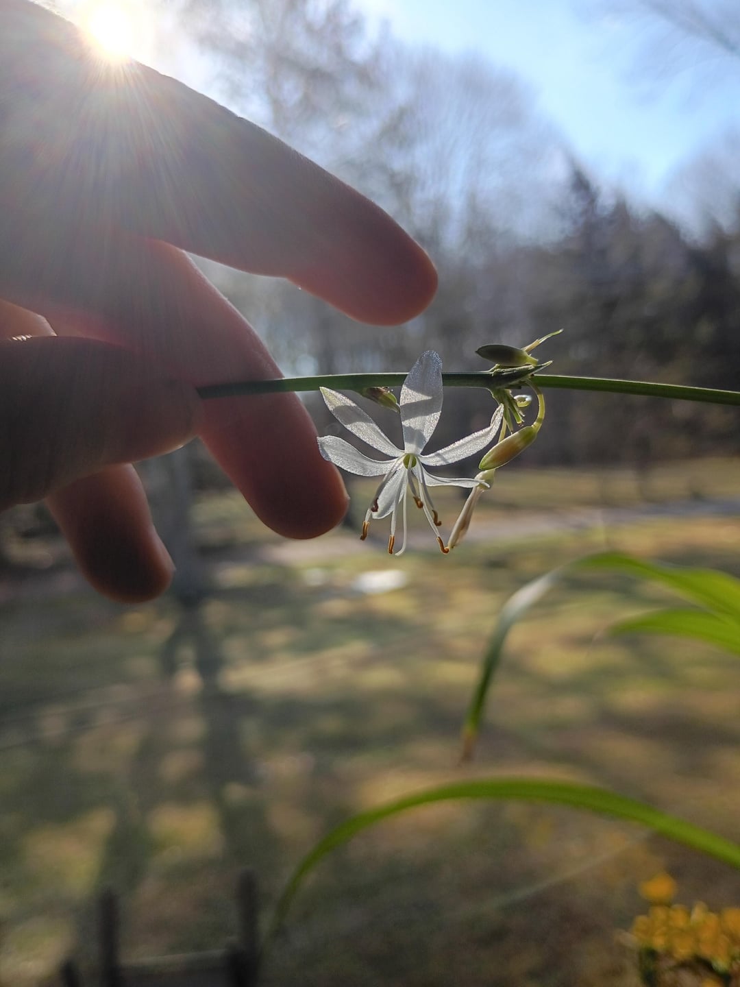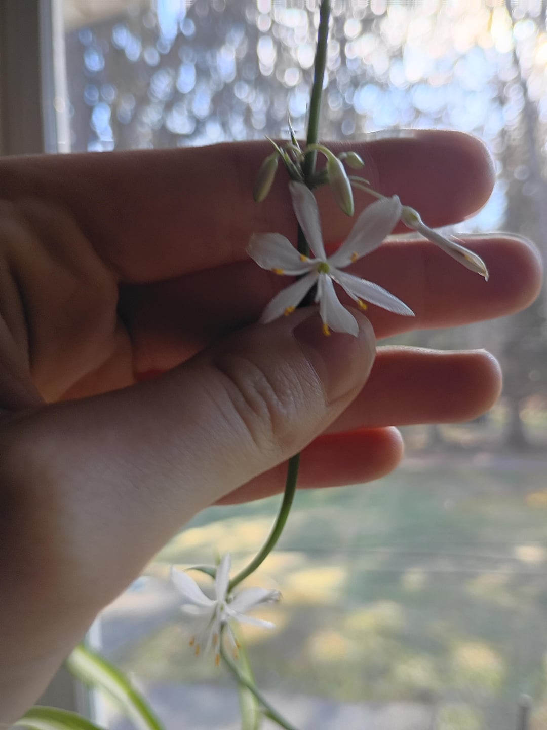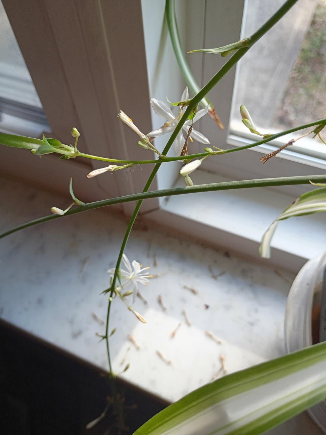 Mine are blooming, too! My friend gave me two baby spider plants over the summer, and I had no idea they’d get so long! Haha! I have a ton of plants, but this is my first time with spider plants. When I brought them in for winter, I had to put them on the highest shelf in my plant room. One is so long I could jump rope with it! The flowers are so delicate and pretty!