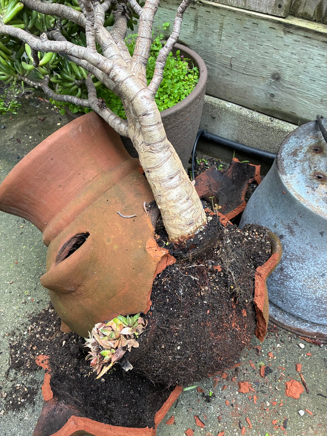 Beautiful plant. Well worth sacrificing the pot to save it.